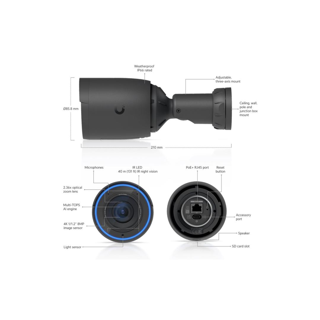 UBIQUITI UVC-G6-PRO-BULLET-B 4K POE CAMERA 2.36X OPTICAL ZOOM