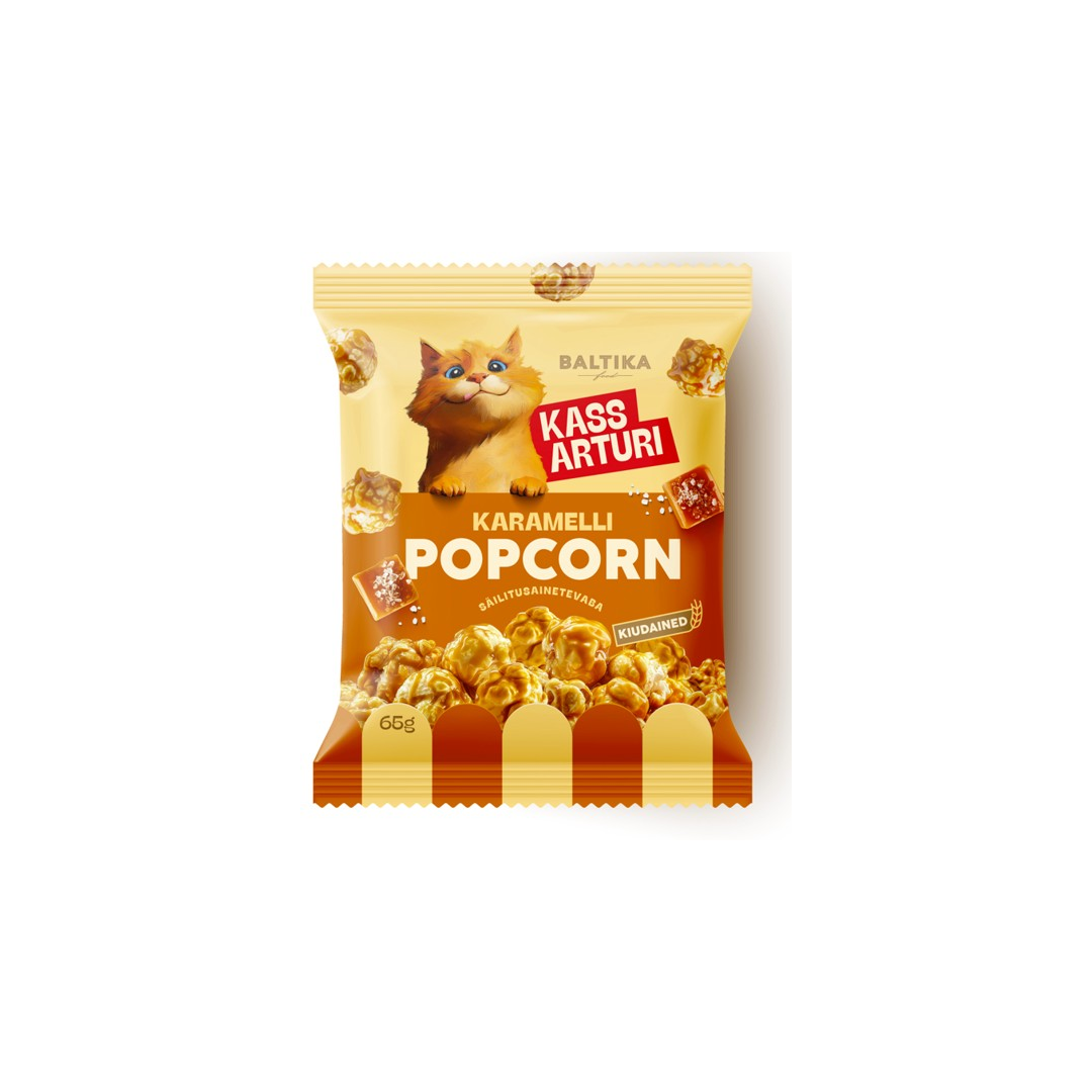Karamell (suhkur, glükoosisiirup, palmiõli, VÕI, emulgaator: rapsiletsitiin, sool), maisiterad 38% Võib sisasldada vähesel määral kõvasid maisiterade osakesi, GLUTEENI ja MAAPÄHKLIT.
