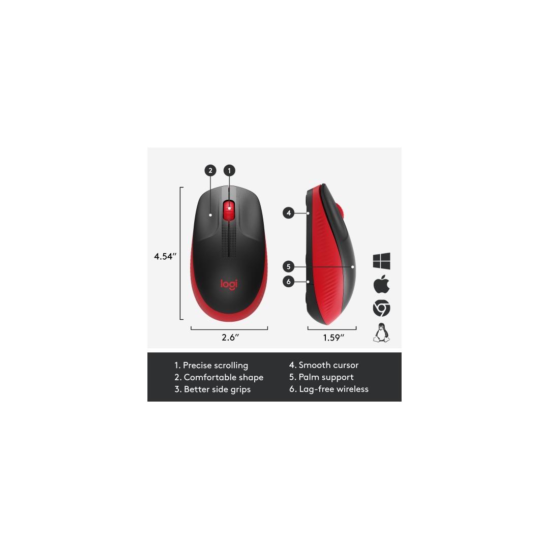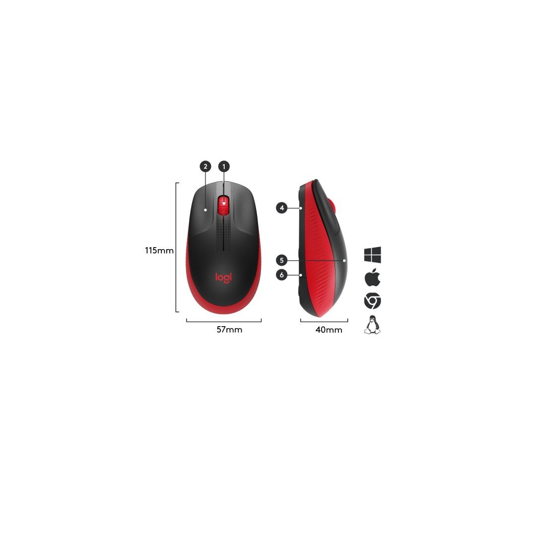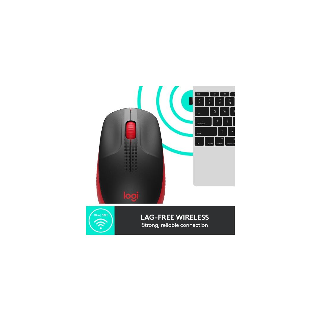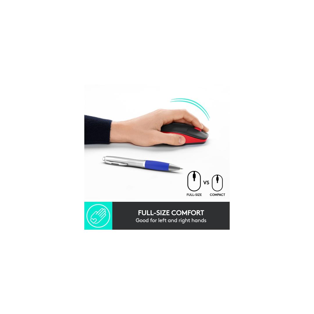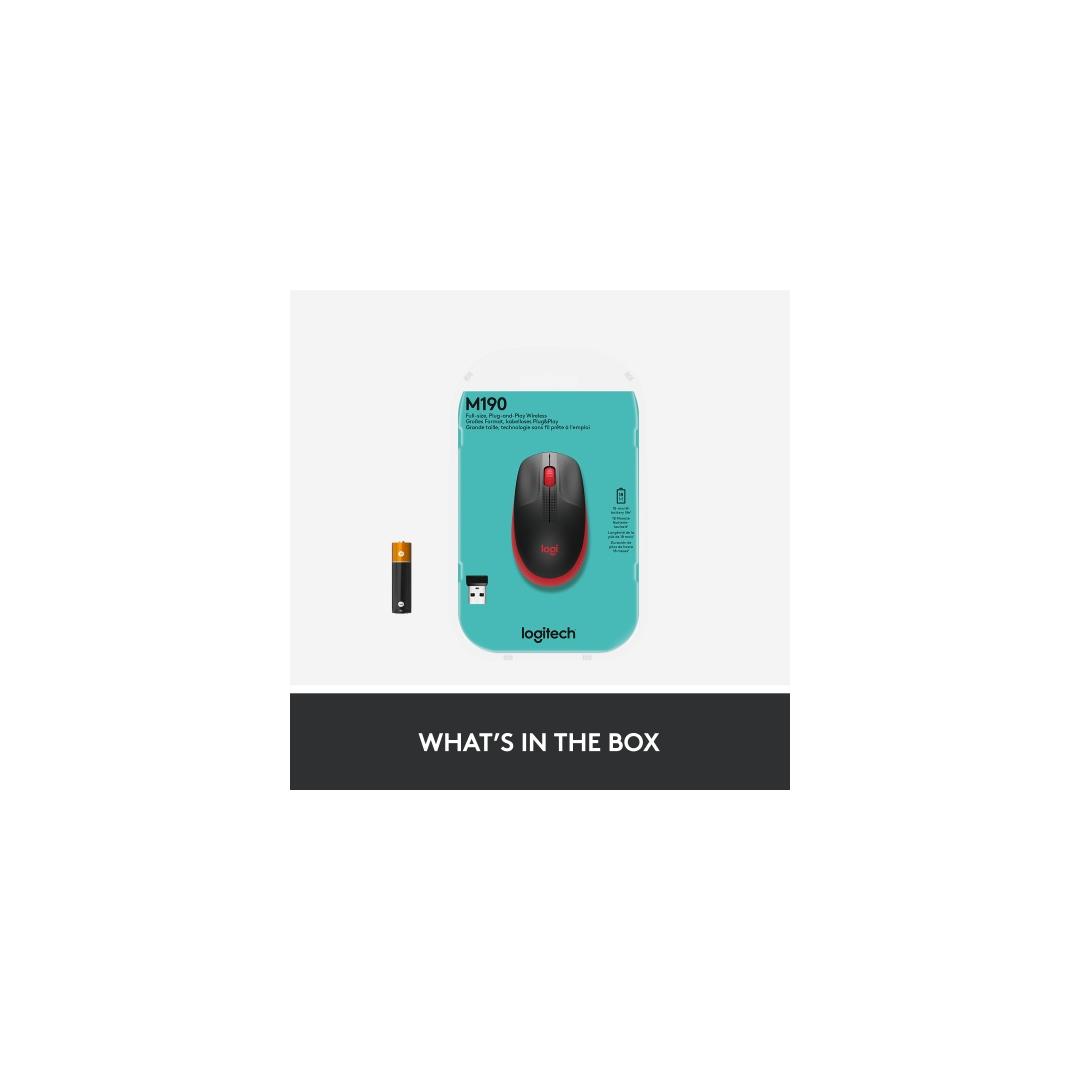Logitech M190 Full-Size Wireless Mouse, RF Wireless, 1000 DPI, Red (SPEC)