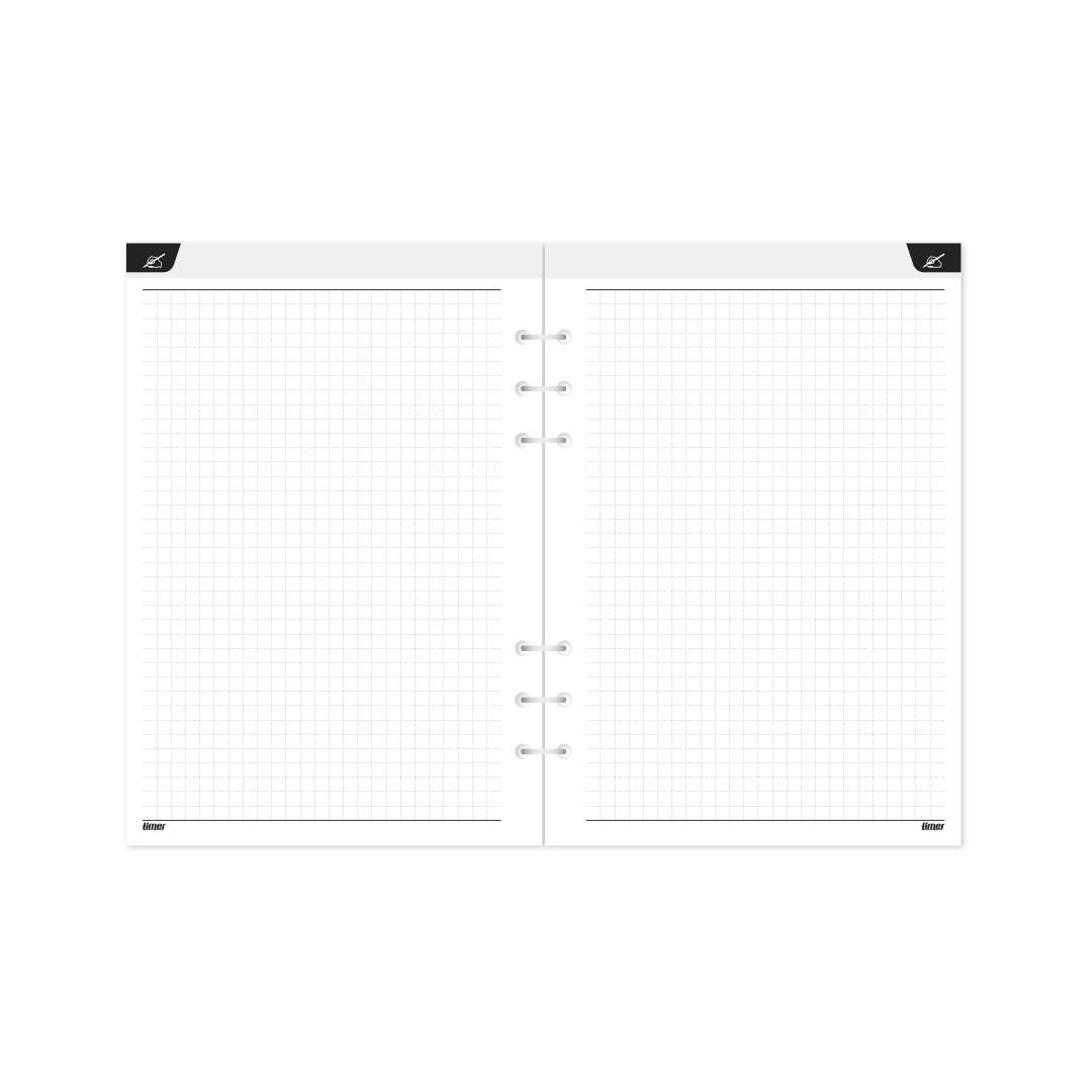 Note sheets 50 pcs Perforated sheets (6 holes) Dimensions: 145 x 210 mm (A5) Suitable for the following covers: MAXI Leather MAXI Artificial leather MAXI Exclusive