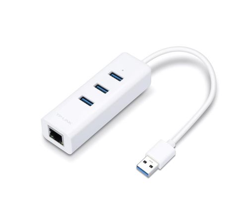 TP-Link UE330 is a USB 3.0 network adapter and hub that offers 3 additional USB 3.0 ports and a Gigabit Ethernet connection. It enables fast and reliable data transfer, as well as the creation of a wired Internet connection for laptops or other devices that do not have a built-in Ethernet port. The compact and portable design makes it an ideal solution for travel and office use.