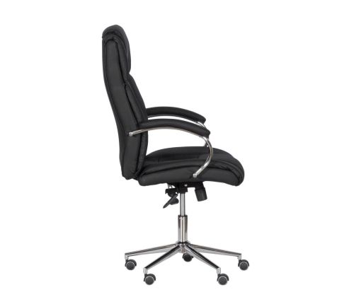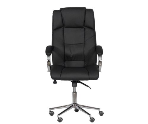 The President´s office chair Carmen 6506-1 is a comfortable model with an elegant classic design • High back, curved soft armrests and durable chrome base • Adjustable swing mechanism and function to lock the backrest and seat position, as well as a shock absorber for height adjustment • Seat depth: 52 cm; seat height: 48-58 cm; backrest height: 64 cm • Type of mechanism: synchronous - locking the backrest and seat into positions • Material: eco leather • Color: black LUX • Base: chrome (luxury) • Armrests: chrome / eco leather • Wheel type: silicone • Maximum load capacity 130 kg • Warranty 2 years