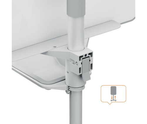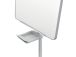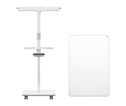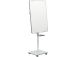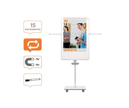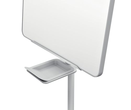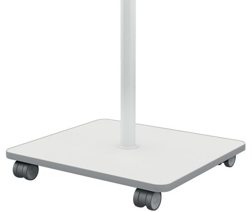 • Double-sided mobile whiteboard with a modern curved corner design. • The whiteboard can be used in both horizontal and vertical positions • Easy height adjustment and easy movement between different locations with lockable wheels for extra stability. • Magnetic steel whiteboard surface for moderate use. • Removable base for whiteboard accessories. • Whiteboard dimensions: 700 x 1000mm • 15-year warranty on the whiteboard surface