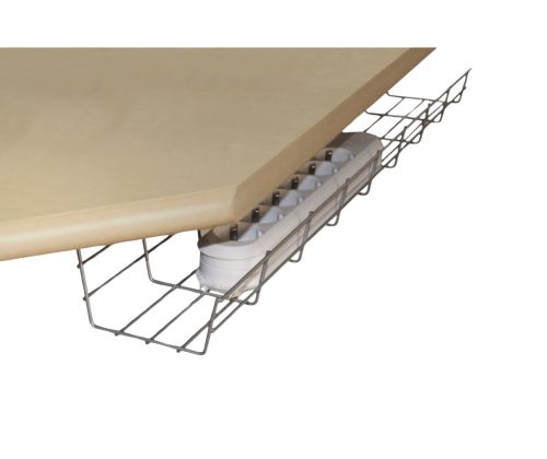 Varjatud metallist kaablikorv kaitseb juhtmeid kahjustuste eest ning vähendab komistamisriski. Saadaval kolmes värvitoonis.