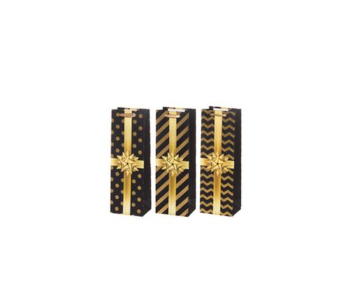 Bottle bag with handles 12x36x9cm (black/gold pattern, 3 different ones)