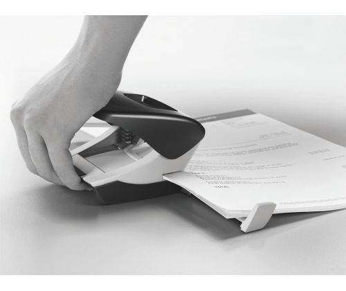 Hole puncher Leitz 5008 for 30 pages. • Innovative design and extra sharp punch blades • Pull-out limiter with marked paper sizes • Easy to empty