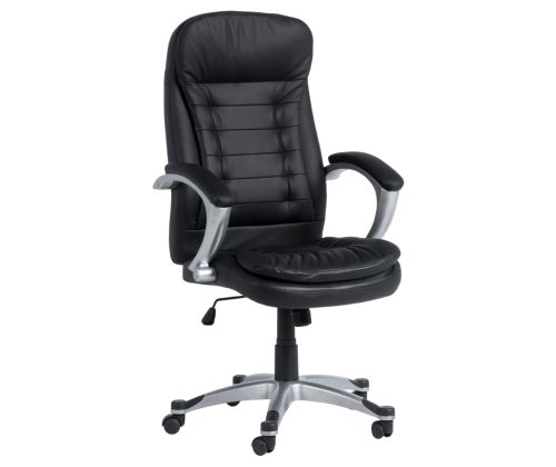 • Президентское кресло Carmen 6113M привнесет стиль и комфорт в каждый офис или дом • Дополнительный слой набивки на сиденье и спинку обеспечивает полный комфорт • Офисное кресло на колесах с высокой спинкой и подлокотниками • Глубина сиденья: 52 см; высота сиденья: 48-54 см; высота спинки: 70 см • Тип механизма: наклонно-натяжной - с функцией качания или фиксации в вертикальном положении • Материал: экокожа • Цвет: черный • Основание: хром, подлокотники - хром+ПУ • Тип колес: силикон • Максимальная нагрузка грузоподъемность 130 кг • Гарантия 2 года