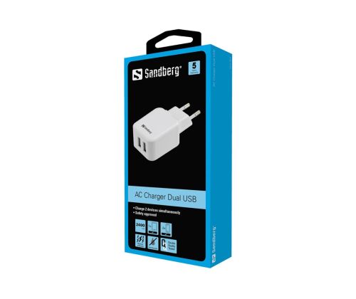 SANDBERG зарядное устройство переменного тока Dual USB 2.4+1A EU