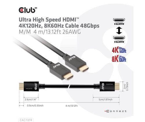 CABLE HDMI TO HDMI 4M/M/M CAC-1374 CLUB3D