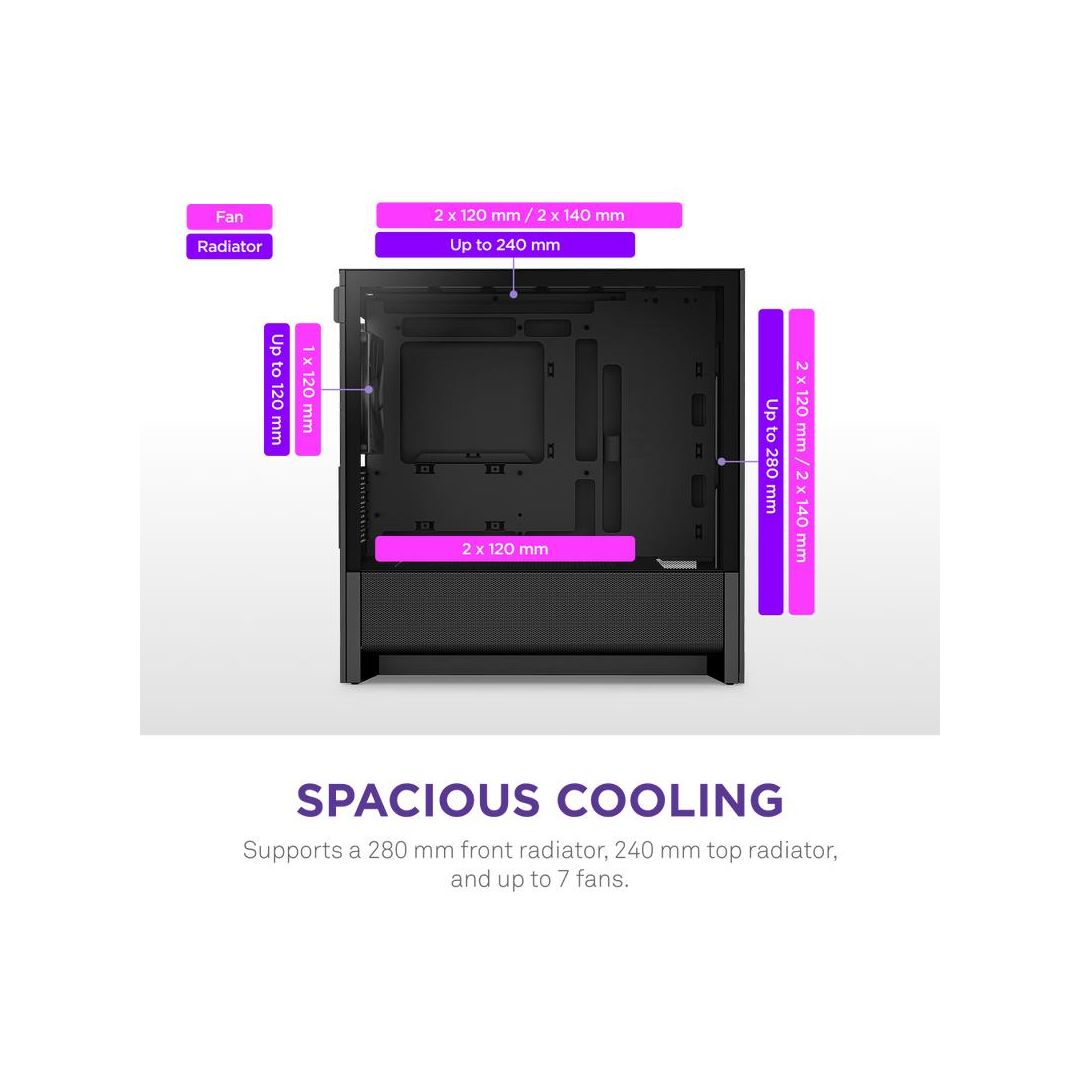 - Extensive Cooling Support: Supports up to a 280 mm radiator in the front, a 240 mm radiator on top, and up to seven fans for powerful, customizable cooling performance.