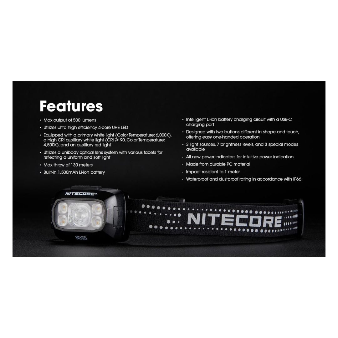 The Nitecore NU30 is a versatile and lightweight rechargeable headlamp designed for a wide range of outdoor activities like hiking, camping, and trail running. It stands out for offering multiple light sources and features in a compact form.
