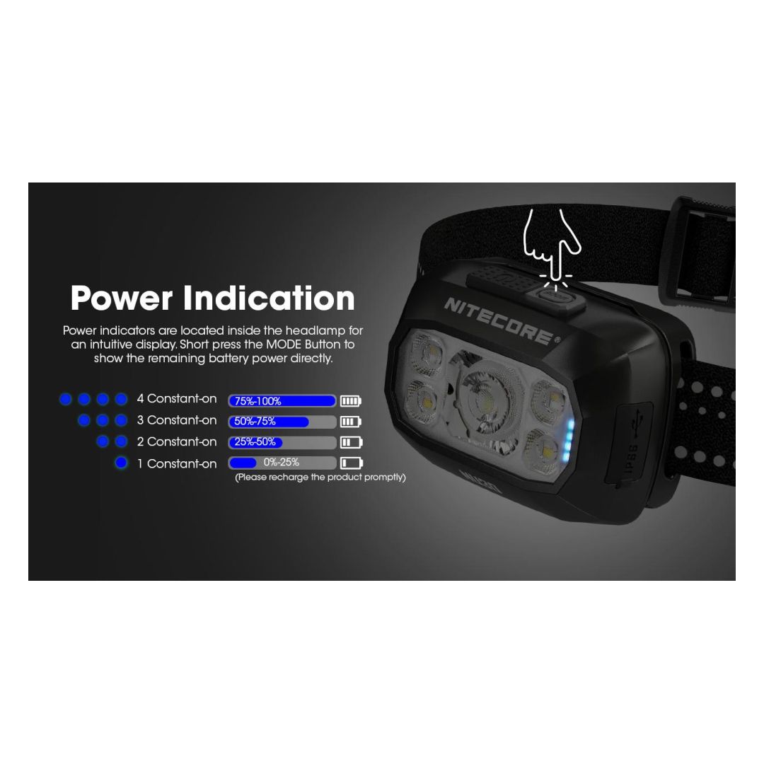 Safety Features: Includes reflective strips on the headband for enhanced visibility and a lockout mode to prevent accidental activation.
