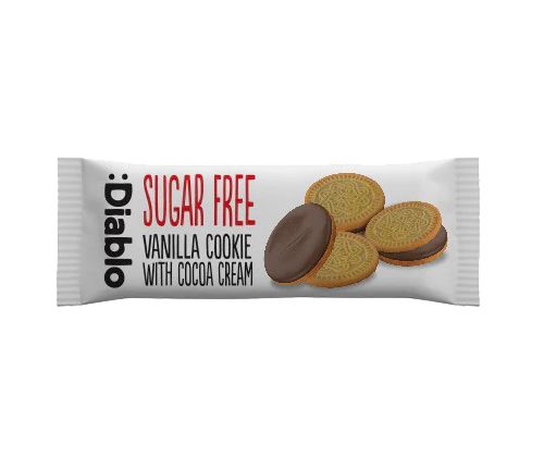 • Печенье ванильное с начинкой какао 44г. • Без сахара. Содержит только натуральные сахара. Diablo SugarFree — ведущий бренд, предлагающий широкий ассортимент продуктов для людей, желающих снизить потребление сахара. Большой выбор сладостей предлагает вкусовые ощущения без добавления сахара. Ассортимент продукции включает печенье, шоколадные конфеты, конфеты, шоколадные кремы, батончики-мюсли.
