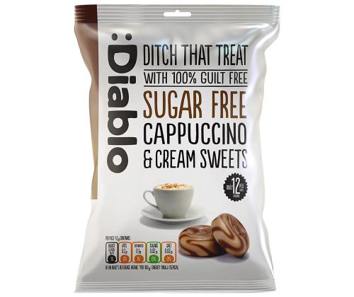 • Карамель без сахара DIABLO, капучино 75г • Содержит только натуральные сахара. Diablo SugarFree — ведущий бренд, предлагающий широкий ассортимент продуктов для людей, желающих снизить потребление сахара. Большой выбор сладостей предлагает вкусовые ощущения без добавления сахара. Ассортимент продукции включает печенье, шоколадные конфеты, конфеты, шоколадные кремы, батончики-мюсли.