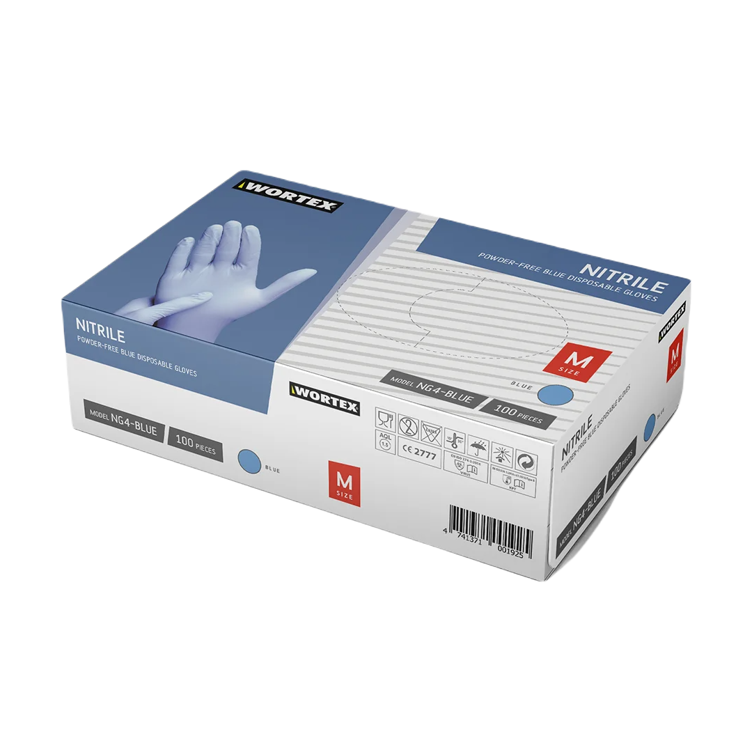 Нитриловые перчатки без пудры, в упаковке 50 шт. Высококачественные и прочные одноразовые синие нитриловые перчатки устойчивы ко многим химическим веществам и подходят для использования как в химических лабораториях, так и в медицине (AQL 1.5). Лучшее сцепление обеспечивается микротекстурой на кончиках пальцев. Безлатексные перчатки не вызывают аллергических реакций и подходят людям с чувствительной кожей. Нитрил