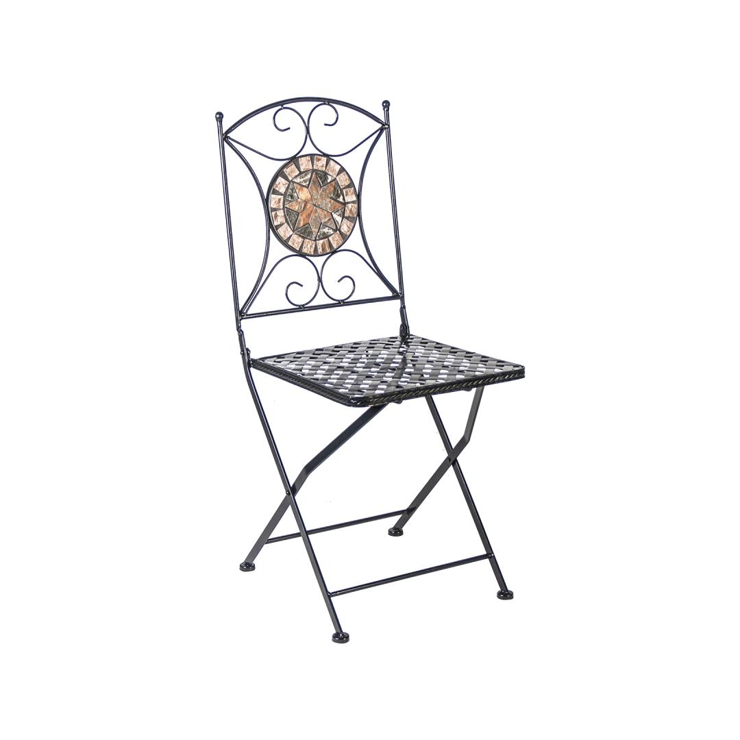 Стул МОЗАИКА складной. Стул изготовлен из металла и покрыт черной порошковой краской. Спинка декорирована мозаичной плиткой в коричневых и серых тонах. Стул складной. Габаритные размеры стула 39х53х90см. Ширина сиденья 37,5 см, глубина сиденья 38 см, высота сиденья 46 см. Ограничение по весу 90 кг. Размеры стула в собранном виде 38х100х11см. Стул MOSAIC складной. Стул изготовлен из металла и окрашен черной порошковой краской. Спинка декорирована мозаичной плиткой в ??коричневых и серых тонах. Стул складной. Габаритные размеры стула 39x53xH90см. Ширина сиденья 37,5см, глубина сиденья 38см, высота сиденья 46см. Предельный вес 90кг. Размеры стула в собранном виде 38х100х11см.