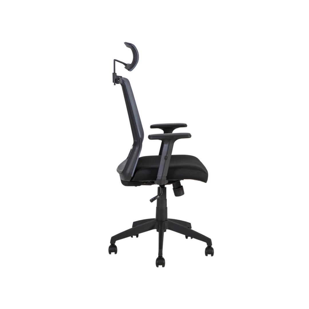 Материал покрытия: сиденье: полиэфирная ткань, цвет: черный, спинка: полиэстеровая сетка, цвет: серый. Каркас и подлокотники: пластик, цвет: черный, подлокотник регулируется по высоте. Механизм и настройки: механизм качания, высота сиденья регулируется газовой заслонкой. Каркас ножки: пластиковый крест, цвет: черный. Колеса: пластиковые, штифт: 11 мм. Размеры: высота 87,5-95см. Дополнительная информация: ограничение по весу 120 кг.