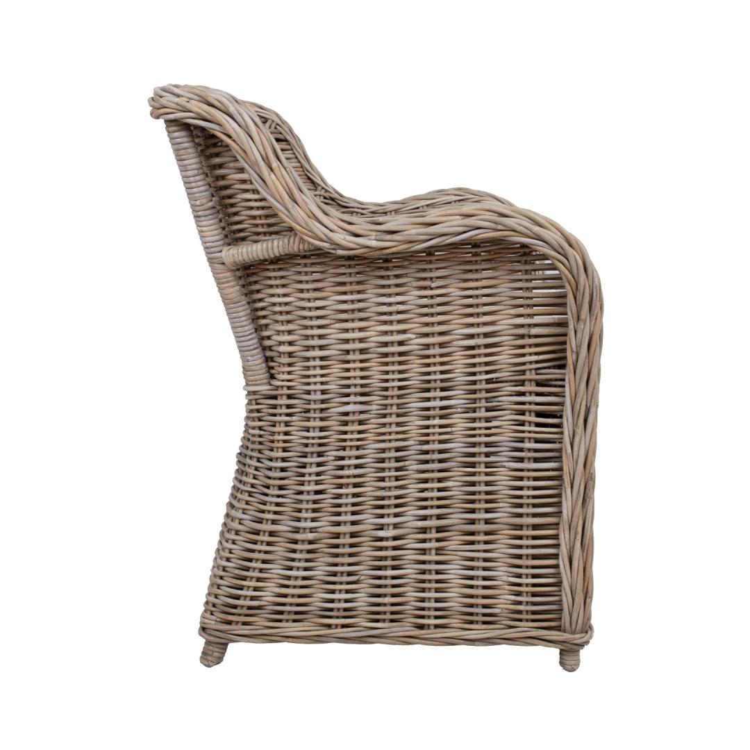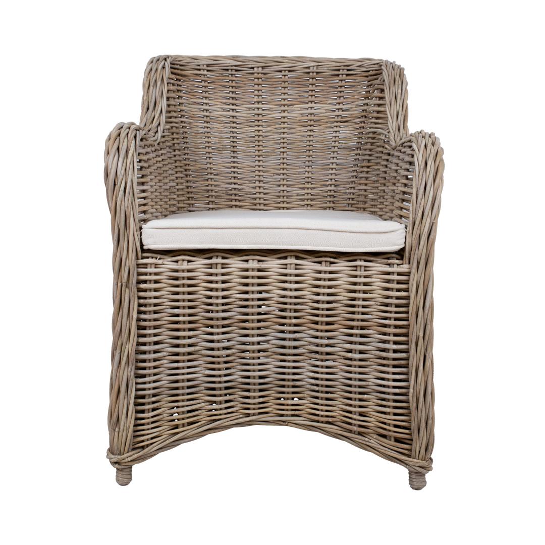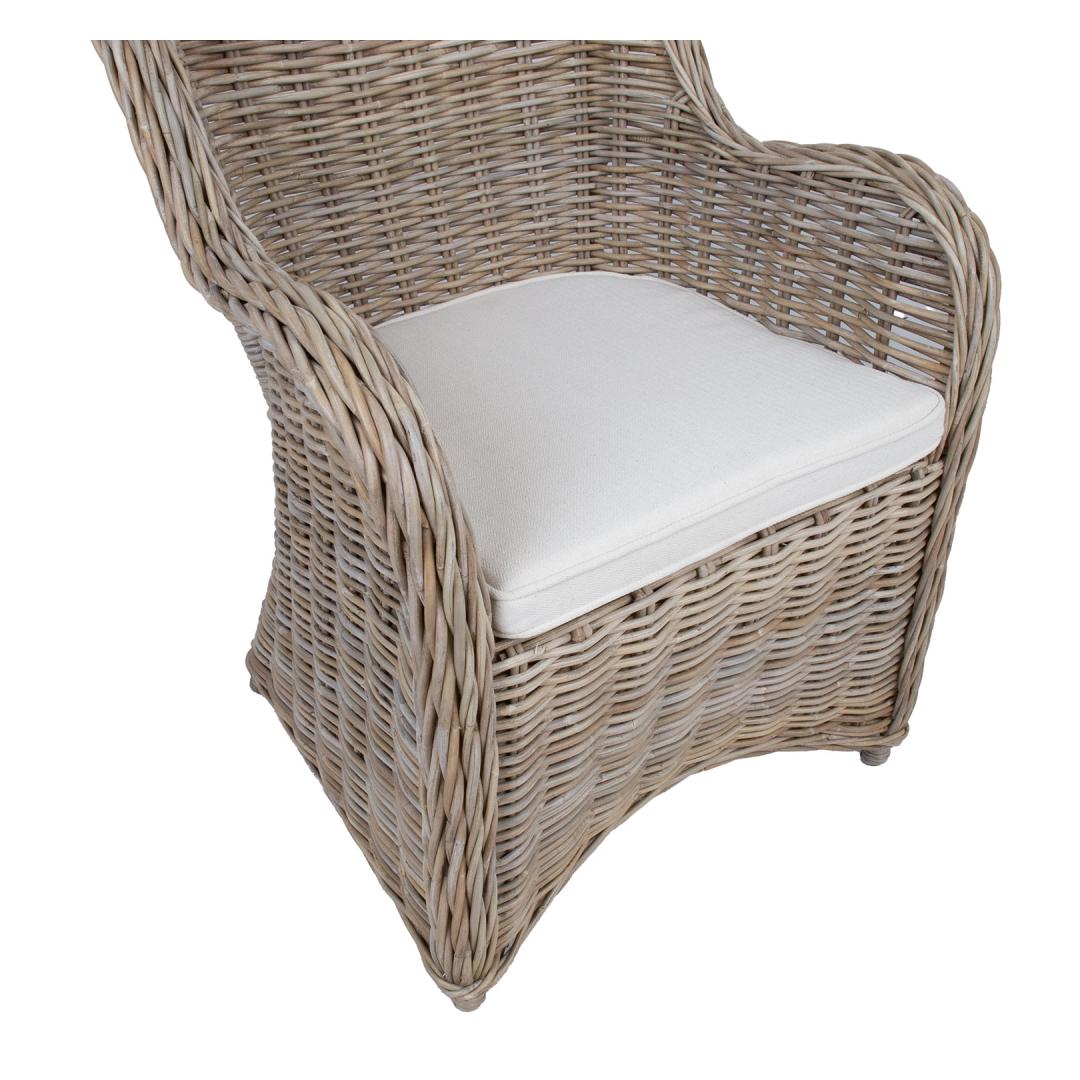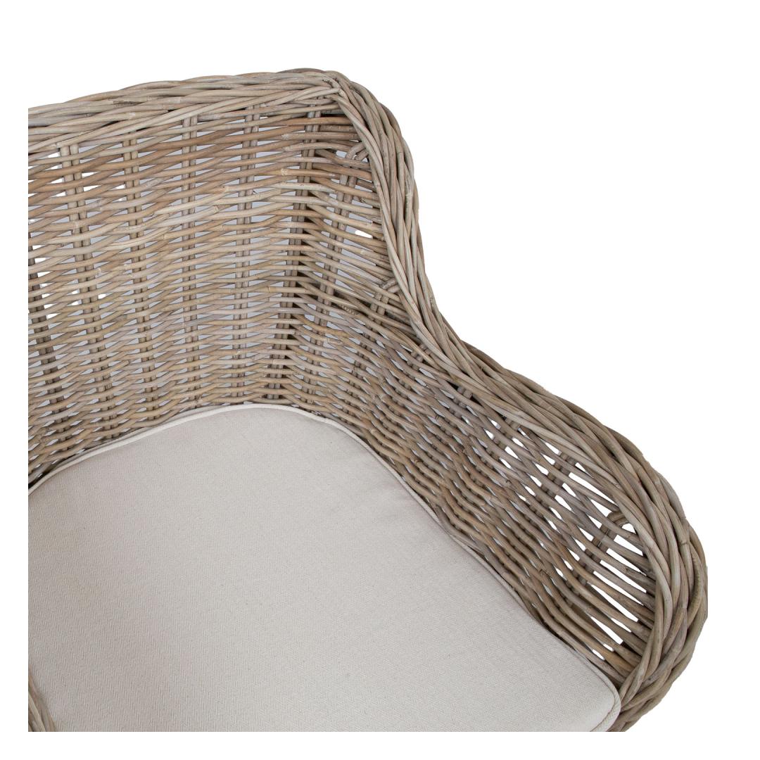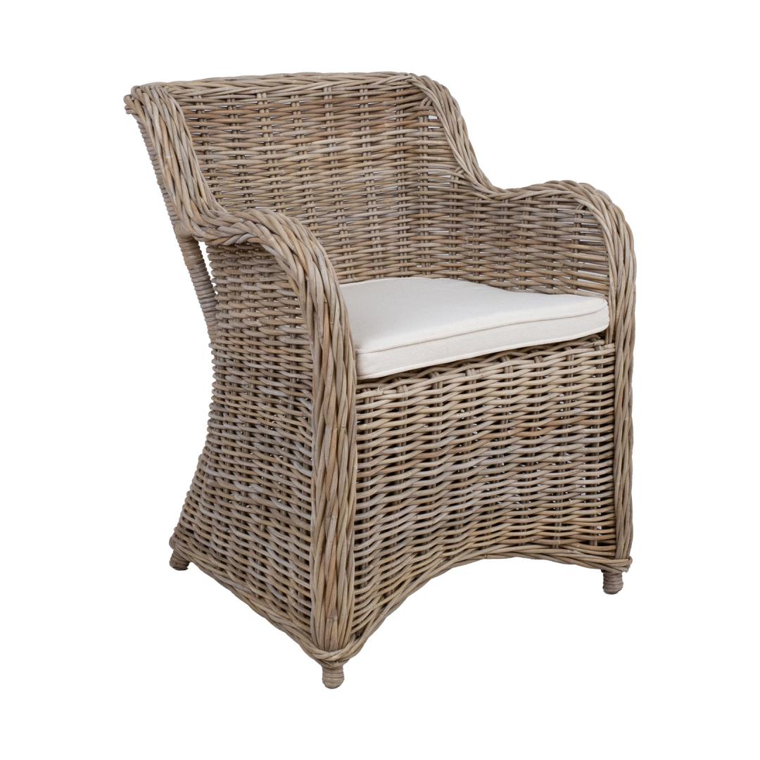 КАТАЛИНА кресло. Кресло из ротанга ручной работы – это стильный и красивый элемент интерьера, создающий уютную и естественную атмосферу. Каркас стула изготовлен из гнутого ротанга и полностью покрыт ротанговой тесьмой. Подушка сиденья входит в комплект. Габаритные размеры стула 62x62xH83см. Размеры подушки сиденья стула 46x48xH5см, высота сиденья (включая подушку) 50см. Высота подлокотника от земли 67см. Ограничение по весу 100 кг. Серый цвет ротанга натуральный, для его достижения не использовались искусственные красители. Мебель из ротанга можно использовать в помещении круглый год и хорошо подходит для крытой террасы или застекленного балкона. Мебель можно использовать на открытом воздухе, но следует помнить, что мебель из ротанга не защищена от атмосферных воздействий. Tugitool KATALINA. Käsitööna valminud rotang tugitool on stiilne ja kaunis sisustuselement hubase ja looduslähedase atmosfääri loomiseks. Tooli raam on valmistatud painutatud rotangist ja kaetud üleni kubu rotangist punutisega. Istmepadi kuulub komplekti. Tooli üldmõõdud on 62x62xH83cm. Tooli istmepadja mõõdud on 46x48xH5cm, istme kõrgus (koos padjaga) 50cm. Käetoe kõrgus maast on 67cm. Kaalupiirang 100kg. Rotangpunutise hall värvitoon on looduslik ja selle saavutamiseks ei ole kasutatud kunstlikke värvaineid. Rotangmööbel on aastaringselt kasutatav siseruumides ning sobib hästi katusega terrassile või klaasitud rõdule. Mööblit võib kasutada välitingimustes, kuid tuleb meeles pidada, et rotangmööbel ei ole ilmastikukindel.