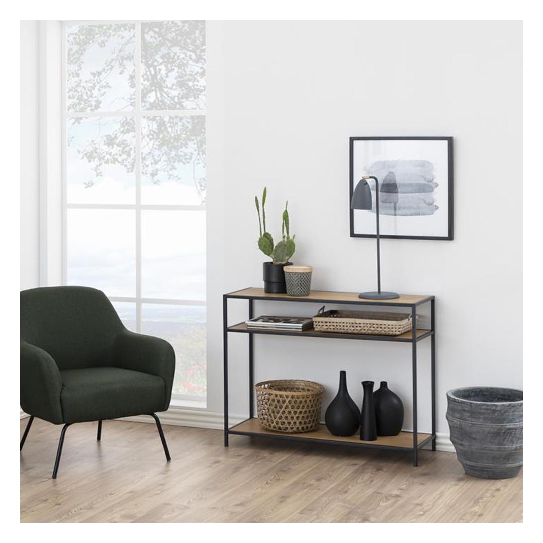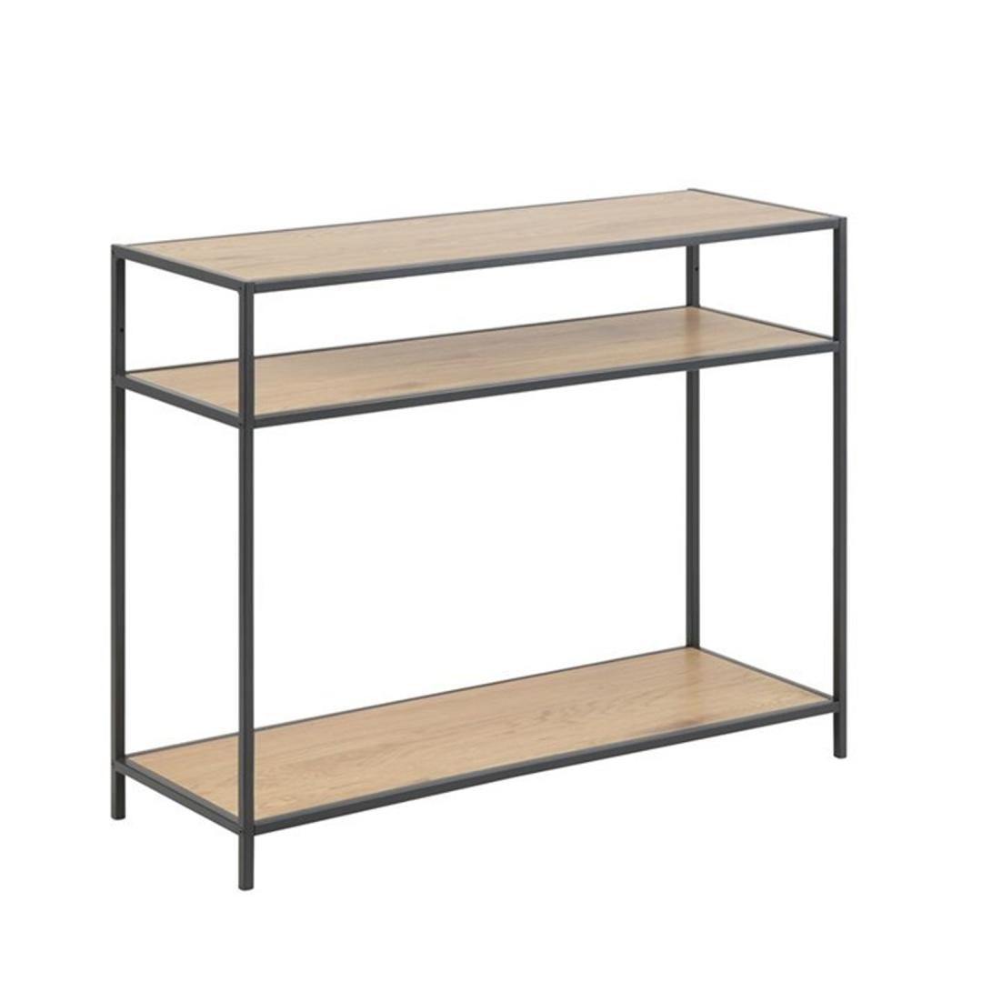 Столик приставной SEAFORD, 100x35xH79см, столешница: мебельный щит с ламинированным покрытием, цвет: дуб, каркас: металл, цвет: чёрный. Рама: чёрный металл.
