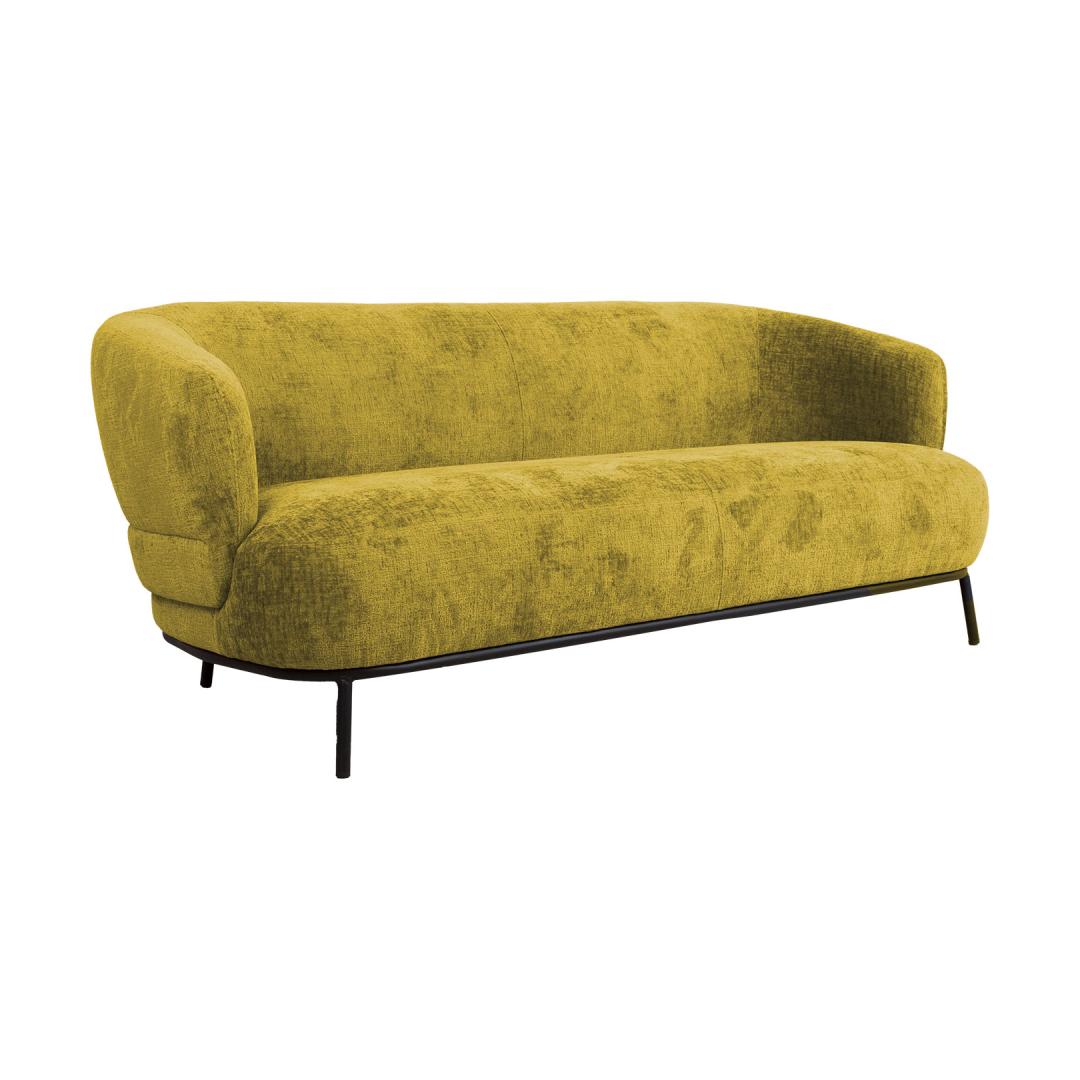 Диван ГЕМАЛА 2,5 местный, желтый. Мягкое сиденье дивана обтянуто бархатной полиэстеровой тканью, стоимость Martindale 41 000. Каркас дивана изготовлен из дерева и фанеры. Внутри сиденья находится блок пружин карманного типа. Для набивки используется пенополиуретан и полиэфирное волокно. Габаритные размеры дивана 200х84х82см. Ширина сиденья 168см, глубина сиденья 60см, высота сиденья 48см. Высота подлокотника от земли 70 см. Диван имеет черные металлические ножки высотой 17см. Diivan GEMALA 2,5 kohaline, kollane. Diivani pehme polsterdusega iste on kaetud sametise polüesterkangaga, Martindale väärtus 41 000. Diivani karkass on valmistatud puidust ja vineerist. Istme sees on pocket vedruplokk. Polsterduseks on kasutatud polüuretaanvahtu ja polüesterkiudu. Diivani üldmõõdud on 200x84xH82cm. Istme laius 168cm, istme sügavus 60cm, istme kõrgus 48cm. Käetoe kõrgus maast 70cm. Diivanil on mustad metallist jalad H17cm.