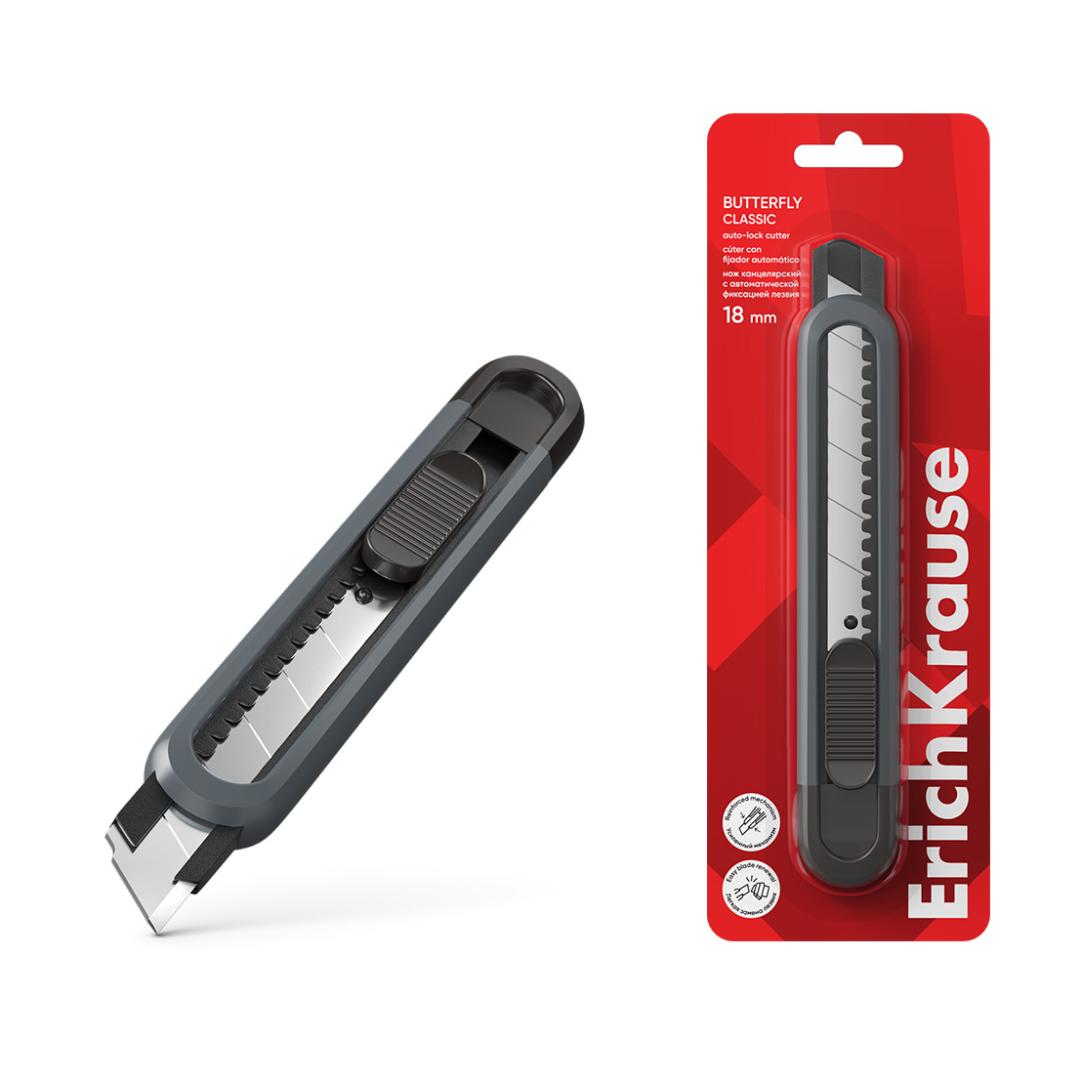 Automaatselt lukustuva tera kinnitussüsteemiga lõikur ja sisseehitatud fiksaator tera segmendi ohutuks eraldamiseks. Kergest ja vastupidavast plastist pehme puutetundliku pinnaga lõikuri korpus. Varustatud metallist juhikutega. Tarnitakse kulumiskindlast terasest teraga.