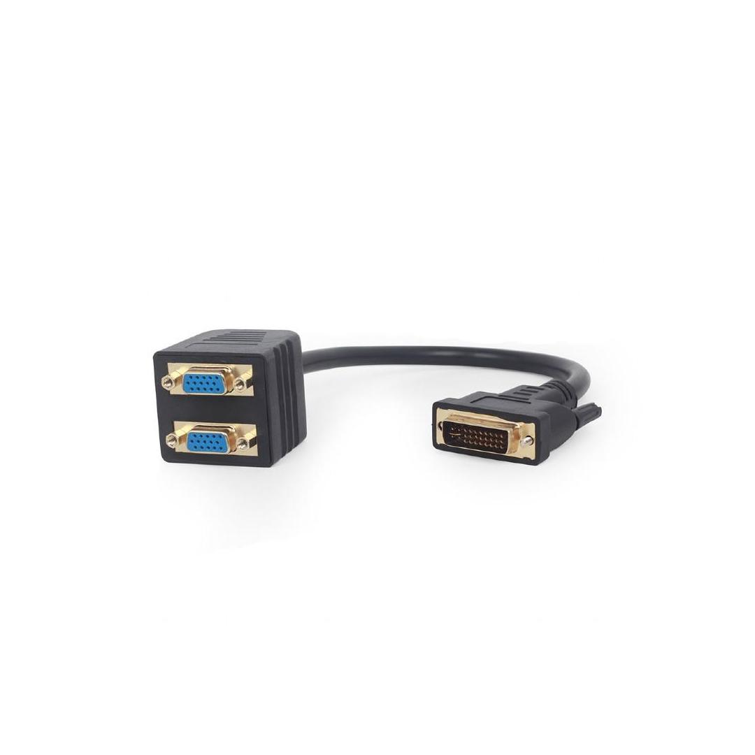 Пассивный разветвительный кабель DVI-I «папа» на два VGA «мама», 0,3 м, черный - ИДЕАЛЬНОЕ СОЕДИНЕНИЕ - Передает один сигнал DVI на 2 дисплея - Идеально подходит для учебных классов и конференц-залов 2x15-контактный D-sub 1xDVI-D, цвет черный Passive DVI-I male to dual VGA female splitter cable, 0.3 m, black