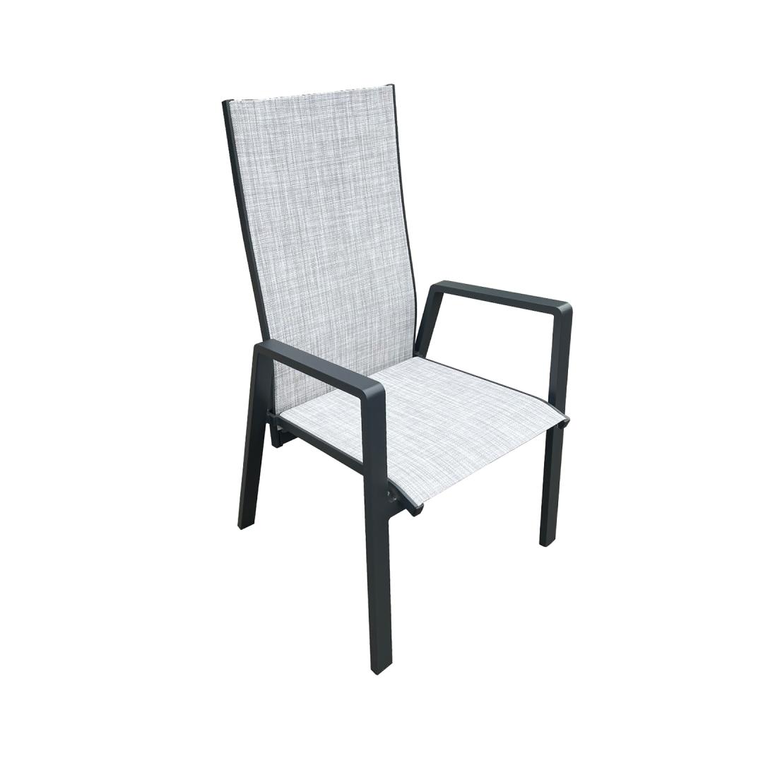 Стул КАСПЕР серый. Ножки и каркас стула изготовлены из алюминия и окрашены порошковой краской. Сиденье из текстиля хорошо пропускает воздух и быстро сохнет. Спинка стула регулируется. Размеры стула 67x56xH94/110см. Ограничение по весу 110 кг. Изделие очень прочное в изменяющихся погодных условиях и простое в уходе. ХРАНЕНИЕ: В конце летнего сезона рекомендуем хранить садовую мебель в помещении. Перед хранением очистите и высушите мебель. Для хранения используйте сухое и хорошо проветриваемое помещение. Tool CASPER hall. Tooli jalad ja raam on valmistatud alumiiniumist ja viimistletud pulbervärviga. Textilene iste laseb hästi õhku läbi ja kuivab kiiresti. Tooli seljatugi on reguleeritav. Tooli mõõdud on 67x56xH94/110cm. Kaalupiirang 110kg. Toode on muutlikes ilmastikutingimustes hästi vastupidav ja lihtsalt hooldatav. HOIUSTAMINE: suvehooaja lõppedes soovitame aiamööblit hoiustada siseruumides. Puhastage ja kuivatage mööbel enne hoiule panekut. Kasutage hoiustamiseks kuiva ning hea ventilatsiooniga ruumi.