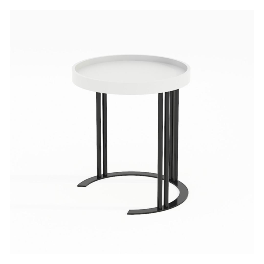 Столик приставной KEIRA D40xH45см, белый. Столешница из МДФ покрыта стойкой полиуретановой краской. Каркас основания стола изготовлен из металла и покрыт черной порошковой краской. Abilaud KEIRA D40xH45cm, valge.