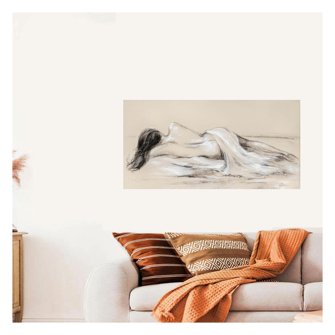 Картина маслом 60х120см, покоящаяся красота.