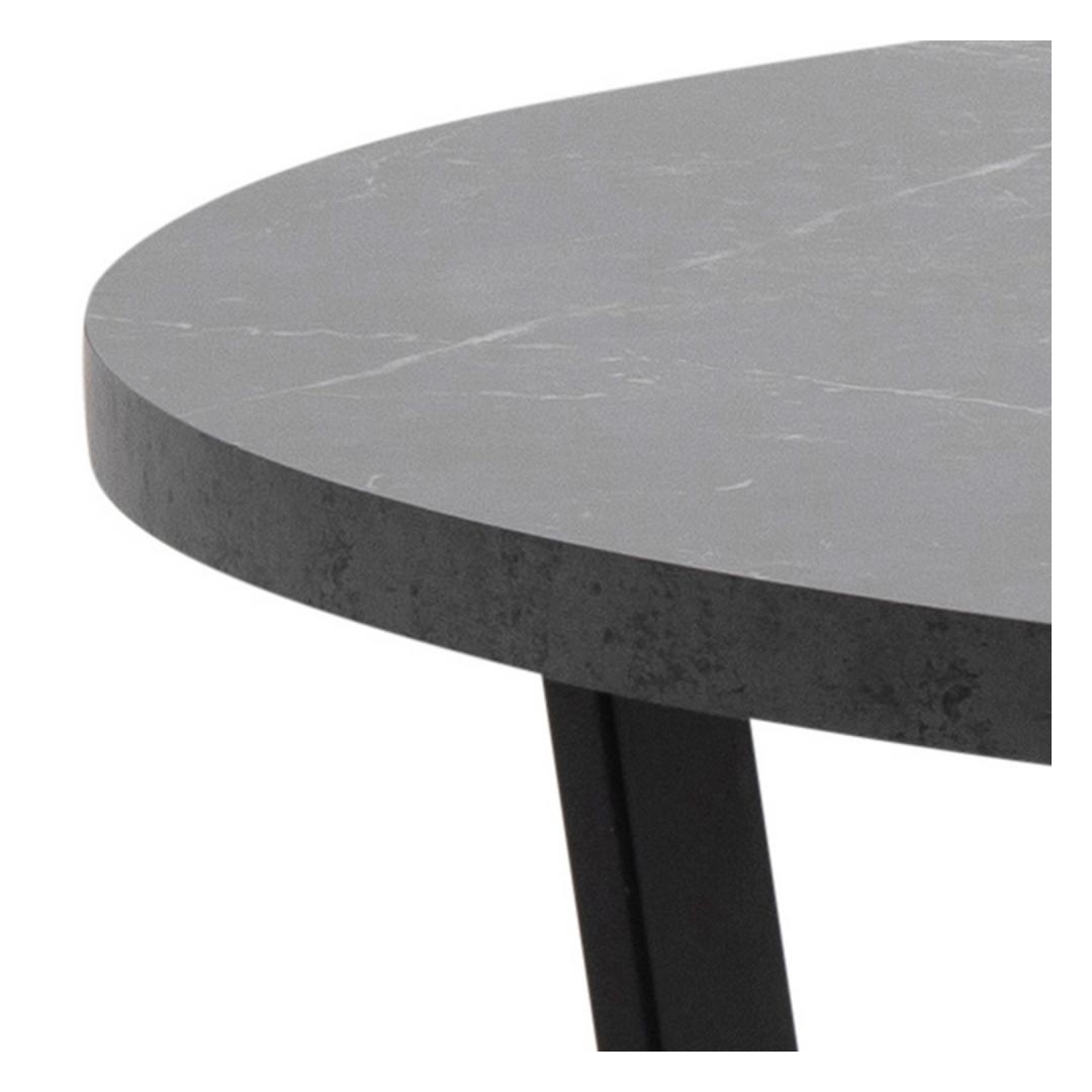 Стол обеденный AMBLE D110x75см, черный мрамор. Персонализируйте свою столовую с помощью современного обеденного стола с мраморным принтом. Стол идеально вписывается в кухню, не занимая слишком много места. Обеденный стол из металла и меламина не только визуально привлекателен, но и долговечен. Выбор материалов обеспечивает минимальный уход. Столешница: меламин с имитацией черного мрамора; ножки: матовый черный металл. УХОД: Как правило, меламиновые поверхности не требуют особого ухода. Используйте ткань, отжатую в мыльной воде, и вытрите поверхность насухо. Не используйте чистящий порошок или нейлоновые губки, поскольку они обесцвечивают или царапают ламинат. Не трите поверхность твердыми предметами. Столешница: меламиновый мраморный принт - черный