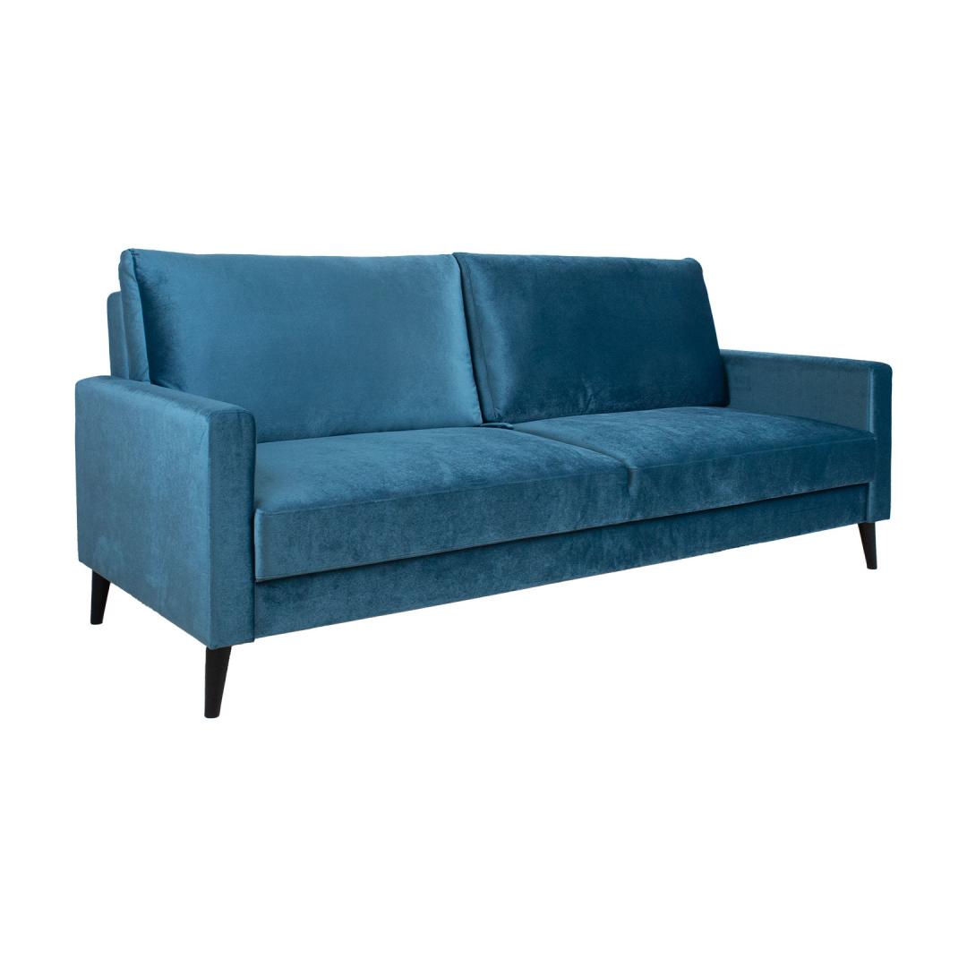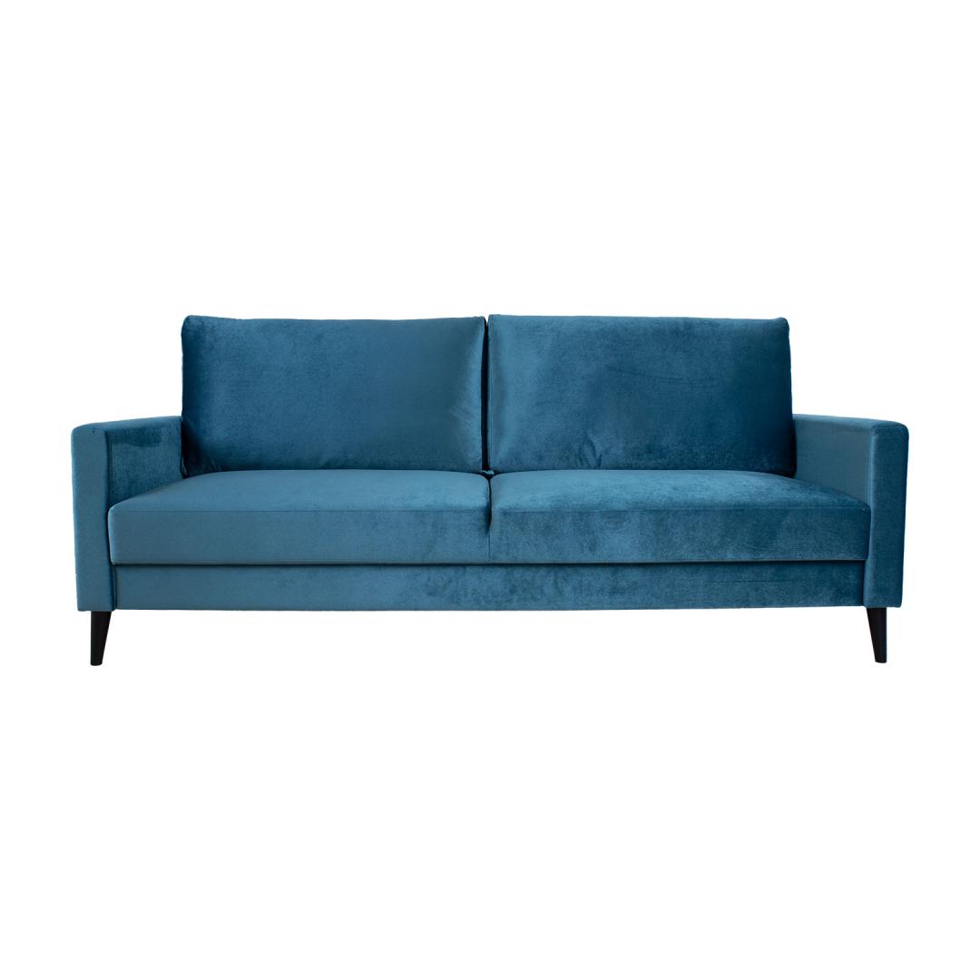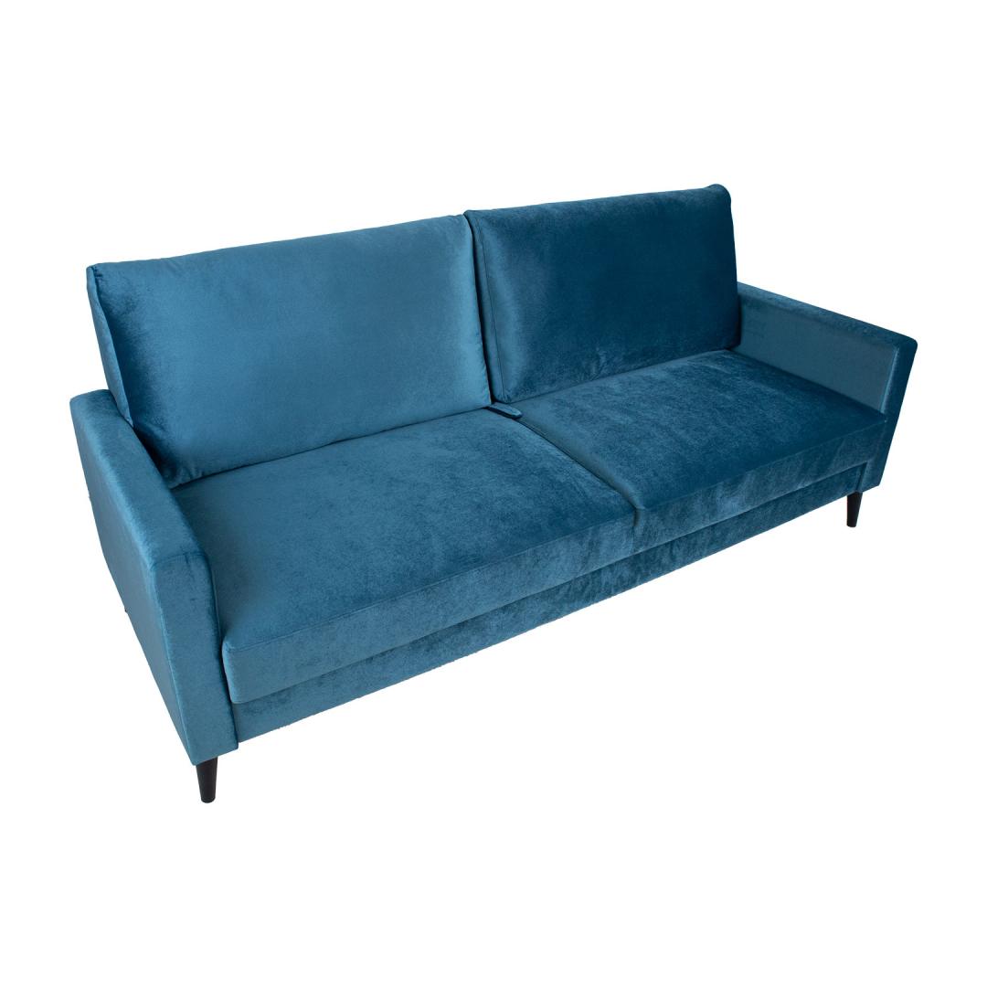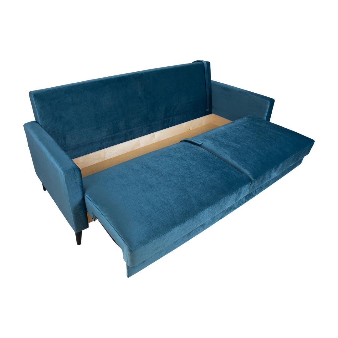 Диван-кровать АННА с ящиком для белья, сине-зеленый бархат. Стильный и функциональный диван-кровать – хорошее решение для создания дополнительного спального места. Чтобы открыть диван, потяните часть сиденья вперед и нажмите на опорные ножки, расположенные по бокам сиденья. Потяните спинку вперед до уровня сиденья. Под сиденьем имеется большое место для хранения вещей. Диван-кровать предназначен для использования в качестве гостевой кровати, а не как повседневное спальное место. Для комфорта и долговечности рекомендуем использовать наматрасник. Каркас дивана изготовлен из березовой фанеры и массива дерева. Комфорт сидения обеспечивается зигзагообразной подвеской и прочной пенопластовой подкладкой. Подушки спинки наполнены поролоном. Чехлы на подушках снимаются и можно стирать. Диван полностью обтянут качественной мебельной тканью стоимостью Martindale 40 000. Габаритные размеры дивана 222х86хВ98см. Высота сиденья 50см, глубина сиденья 47см. Размеры спального места в раскрытом виде составляют 148х200см. Диван имеет темные деревянные ножки высотой 10см. Диван произведен в Эстонии. Diivanvoodi ANNA pesukastiga, sinakasroheline samet.