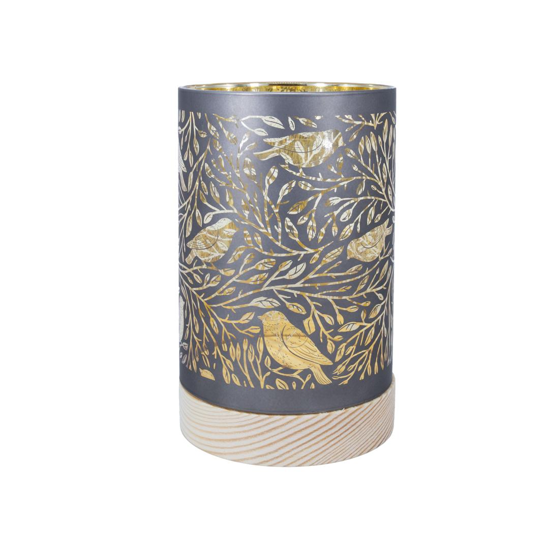 Светодиодный светильник D9,5xH15см *из серого стекла с рисунком птицы *10 светодиодных цепочек *теплый свет *Батарея: 3xAA (не входят в комплект) *Таймер: ВКЛ/ВЫКЛ 6 часов *только для использования в помещении LED-valgusti D9,5xH15cm