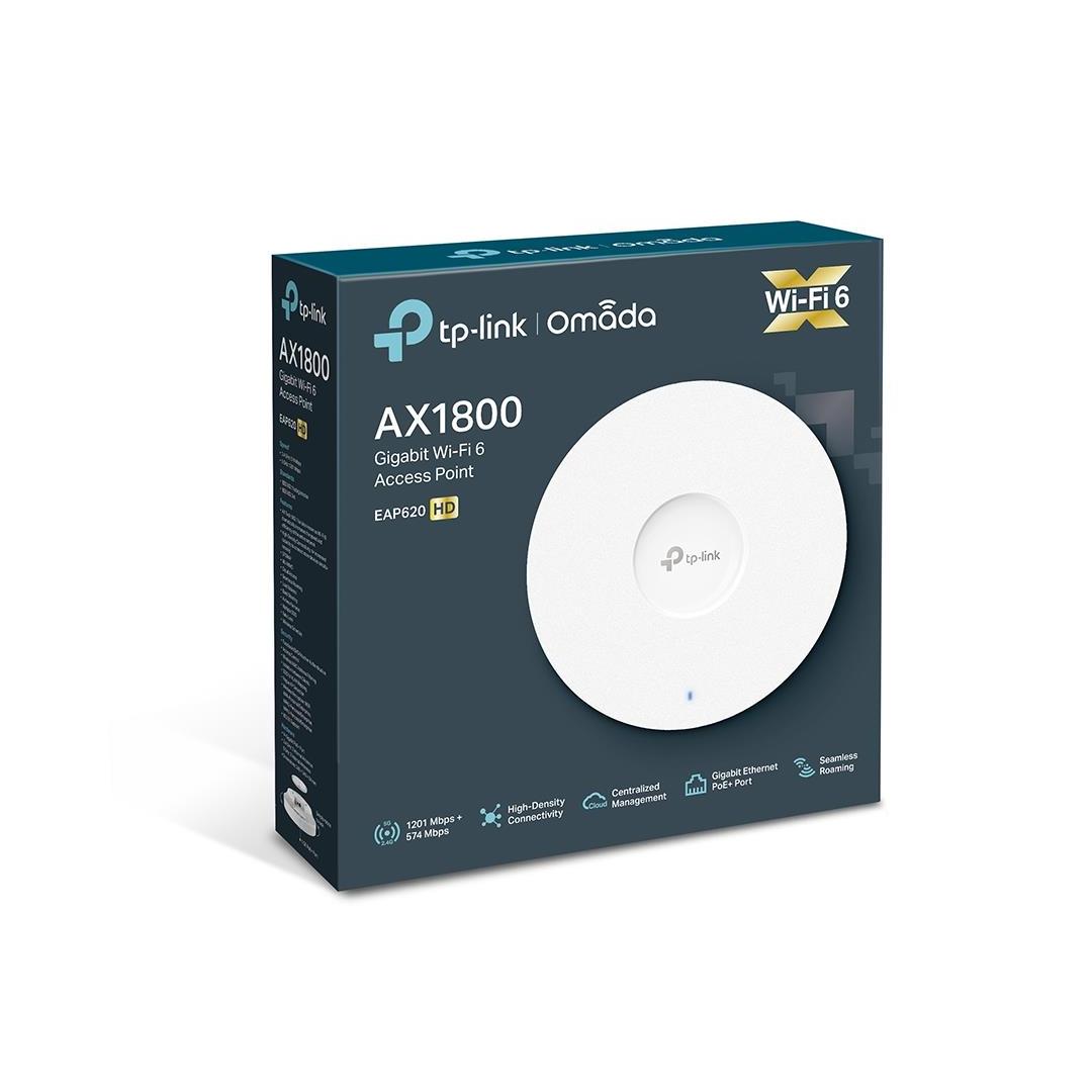 Беспроводная двухдиапазонная точка доступа AX1800 с потолочным креплением — сверхбыстрый Wi-Fi 6 скоростей: одновременные 574 Мбит/с на 2,4 ГГц и 1201 Мбит/с на 5 ГГц, всего 1775 Мбит/с скорости Wi-Fi.† — Высокоплотное подключение: в 4 раза больше возможностей для одновременного подключения большего количества устройств.‡ — Интеграция в Omada SDN: Zero-Touch Provisioning (ZTP)§, централизованное управление облаком и интеллектуальный мониторинг. — Централизованное управление: доступ к облаку и приложение Omada для максимального удобства и простоты управления. — Бесшовный роуминг: даже видеопотоки и голосовые вызовы не затрагиваются при перемещении пользователей между локациями. — Поддержка PoE+: поддерживает питание по Ethernet (802.3at) для удобного развертывания и установки. — Безопасная гостевая сеть: а также несколько вариантов аутентификации (SMS/Facebook Wi-Fi/Voucher и т. д.) и многочисленные технологии беспроводной безопасности. Omada EAP620 HD, Тип Range Extender Скорость передачи данных 1800 Мбит/с, IEEE 802.11a IEEE 802.11g, IEEE 802.11n IEEE 802.11ac, IEEE 802.11ax 1x10/100/1000M, Тип антенны Встроенная Цвет Белый, Размеры 243 × 243 × 64 мм AX1800 Wireless Dual Band Ceiling Mount Access Point