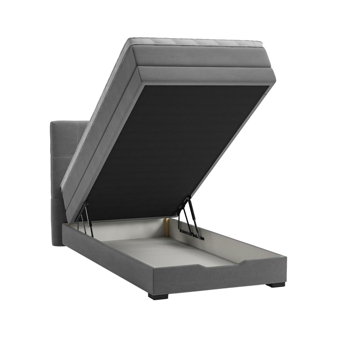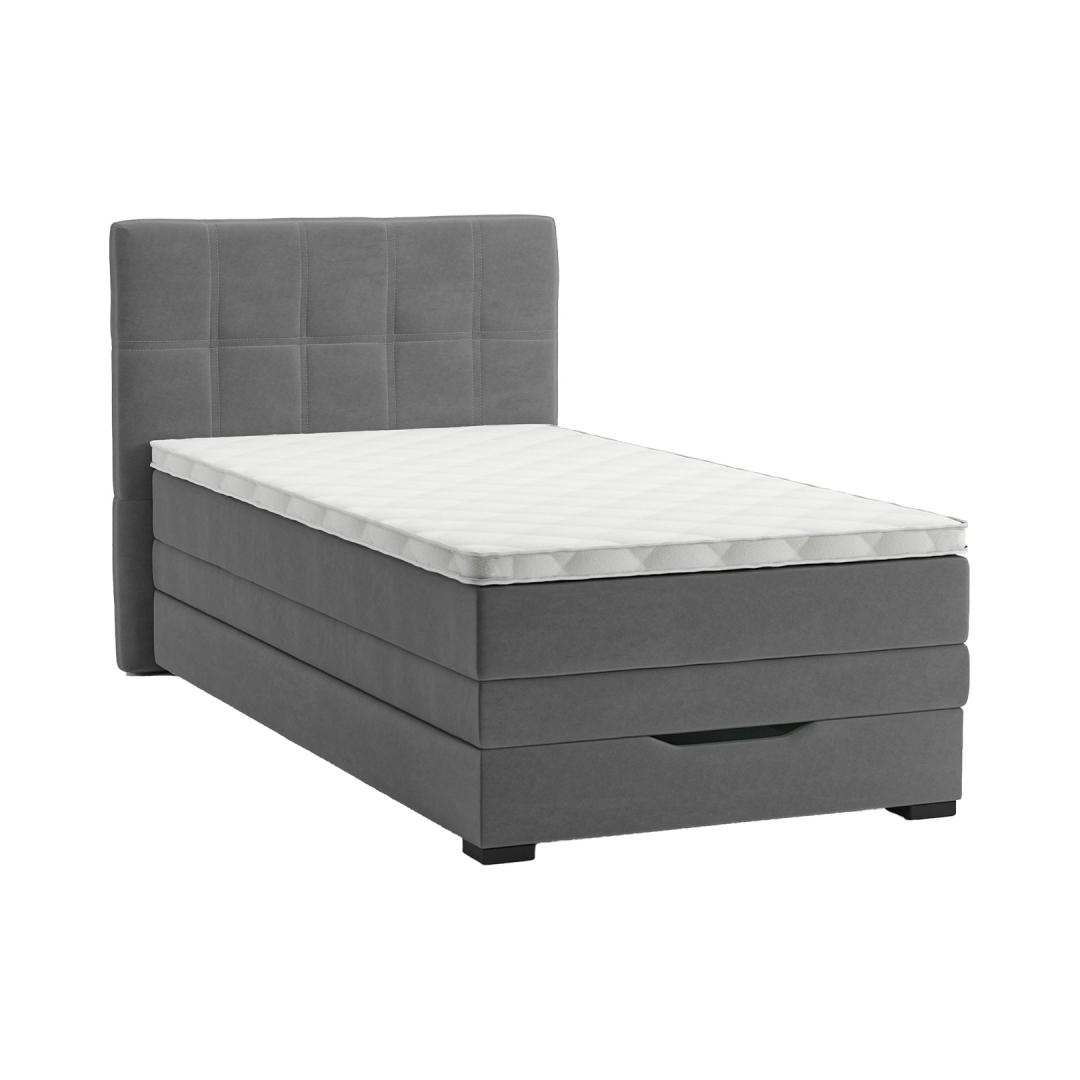 Voodi üldmõõdud on 210x100xH55/107cm. Kontinentaalvoodi JEEP panipaigaga 90x200cm, hall.