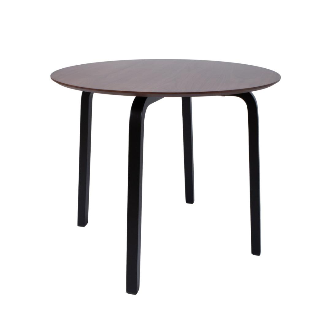 Söögilaud MIA D90xH75cm, pähkel. Lauaplaat: 18mm MDF naturaalse pähklispooniga, lakitud. Jalad on valmistatud täispuidust ja värvitud mustaks.