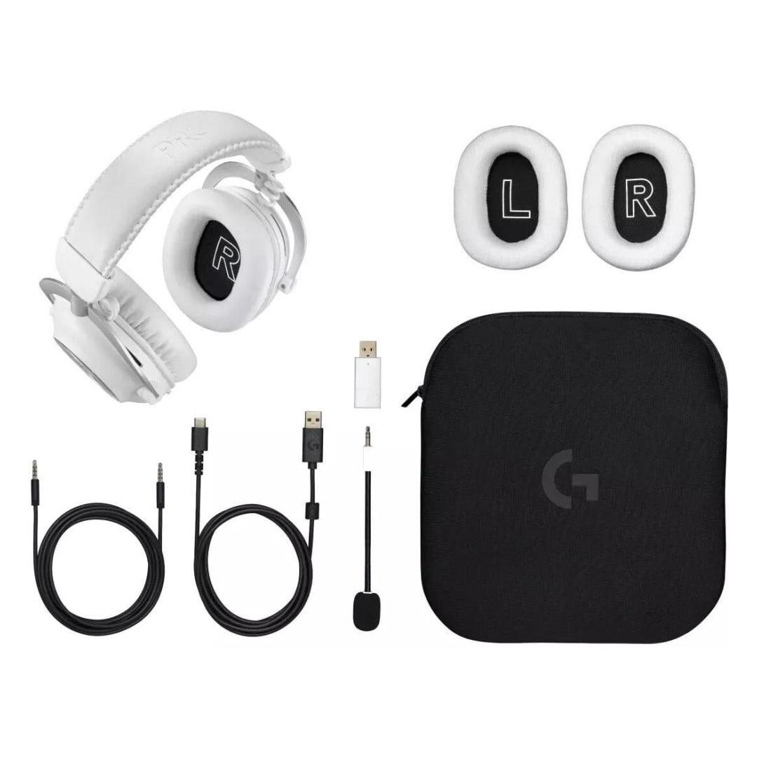 PRO X 2 LIGHTSPEED|Type Gaming/Wireless|Head-Band|1xUSB-C|Bluetooth|Sensitivity 87.8 dB(a)|Cord length 1.8 m|Battery Lithium-Ion rechargeable|Included Accessories PRO X 2 LIGHTSPEED gaming headsetMemory foam leatherette ear padsExtra memory foam cloth ear padsUSB-A LIGHTSPEED Wireless adapter with 3.5mm portDetachable mic with foam windscreenUSB-A to USB-C cable3.5mm cablesoft storage bagUser documentation|Colour White|Weight 0.345 kg