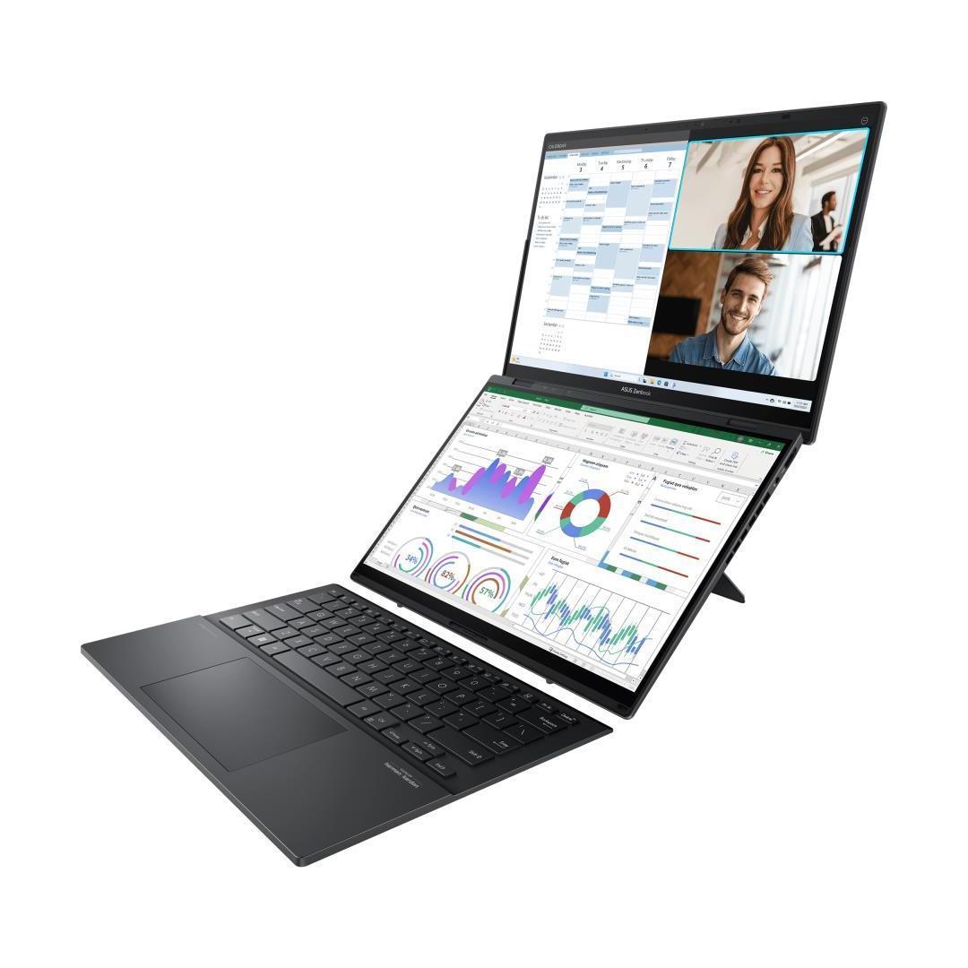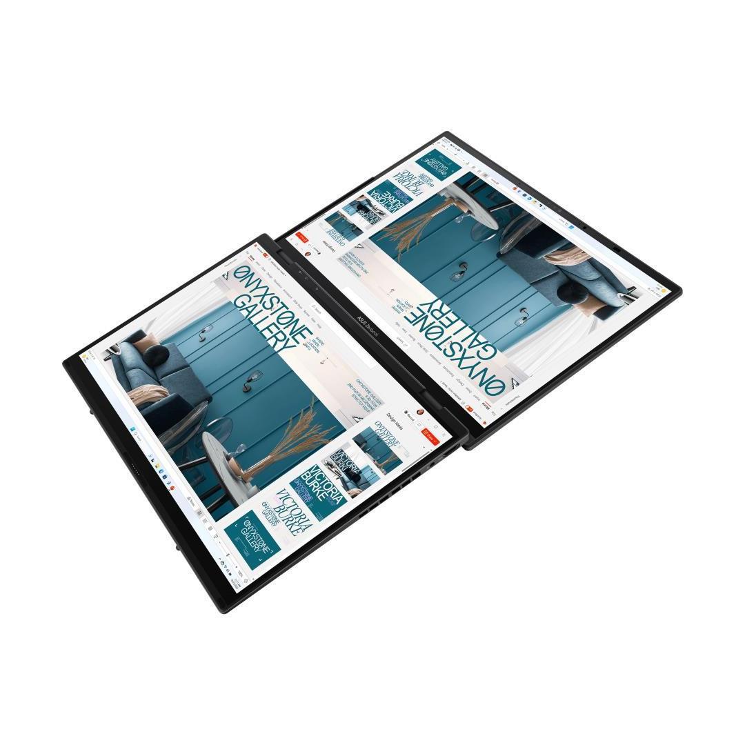 OLED display|ZenBook Series|DUO|UX8406CA-PZ009W|CPU Core Ultra|U9-285H|2900 MHz|Screen 14"|Touchscreen|Resolution 2880x1800|Screen type Glossy|120Hz|RAM 32GB|LPDDR5x|SSD 2TB|Graphics Integrated|VGA card Intel Arc Graphics|Integrated|Keyboard ENG|4 cells|1xHDMI|1xUSB 3.2|1xHeadphones jack|2xThunderbolt|Wireless LAN 802.11ax|Bluetooth|Microphone Built-in|Speakers|WebCam FHD IR|Windows 11 Home|Grey|Width 313.5 mm|Height 21.3 mm|Depth 217.9 mm|Weight 1.65 kg