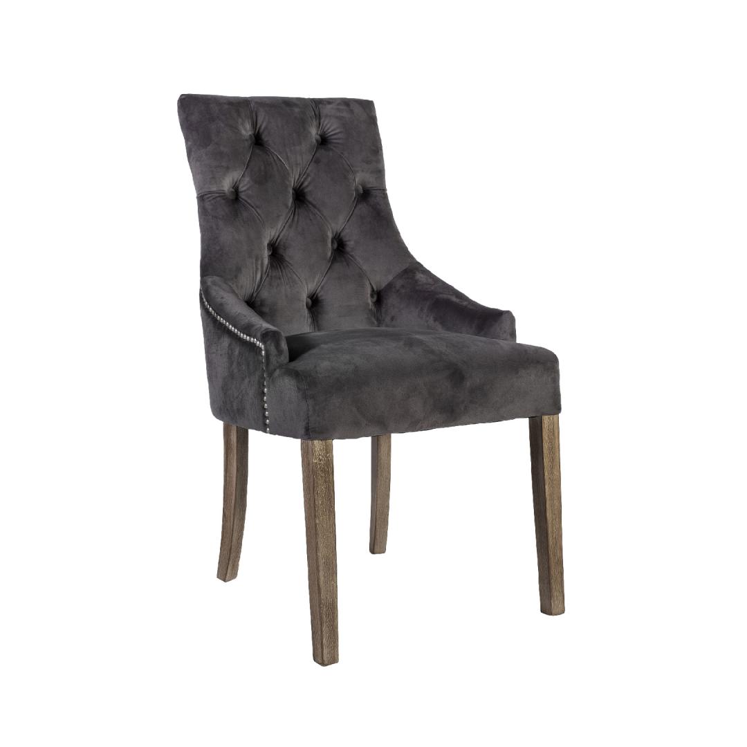 Стул HOLMES VELVET темно-серый. Стул обтянут темно-серой бархатной тканью. Материал чехла - 100% полиэстер. У стула деревянные ножки. Размеры изделия 53x63xH94см.