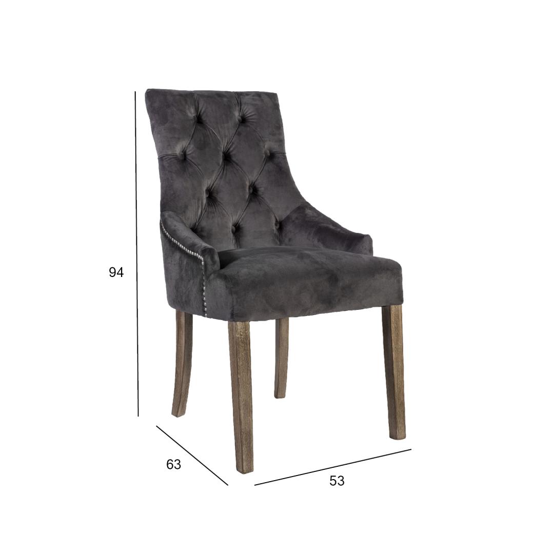 Стул HOLMES VELVET 53x63xH94см темно-серый ткань 100% полиэстер дерево