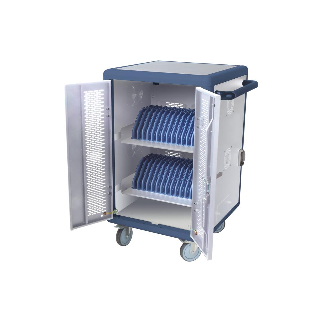 TECHLYPRO Ventilated Charging Station Trolley 30 Notebook or Smartphone White/Blue TECHLYPRO Ventilated Charging Station Trolley 30 Notebook or Smartphone White/Blue
