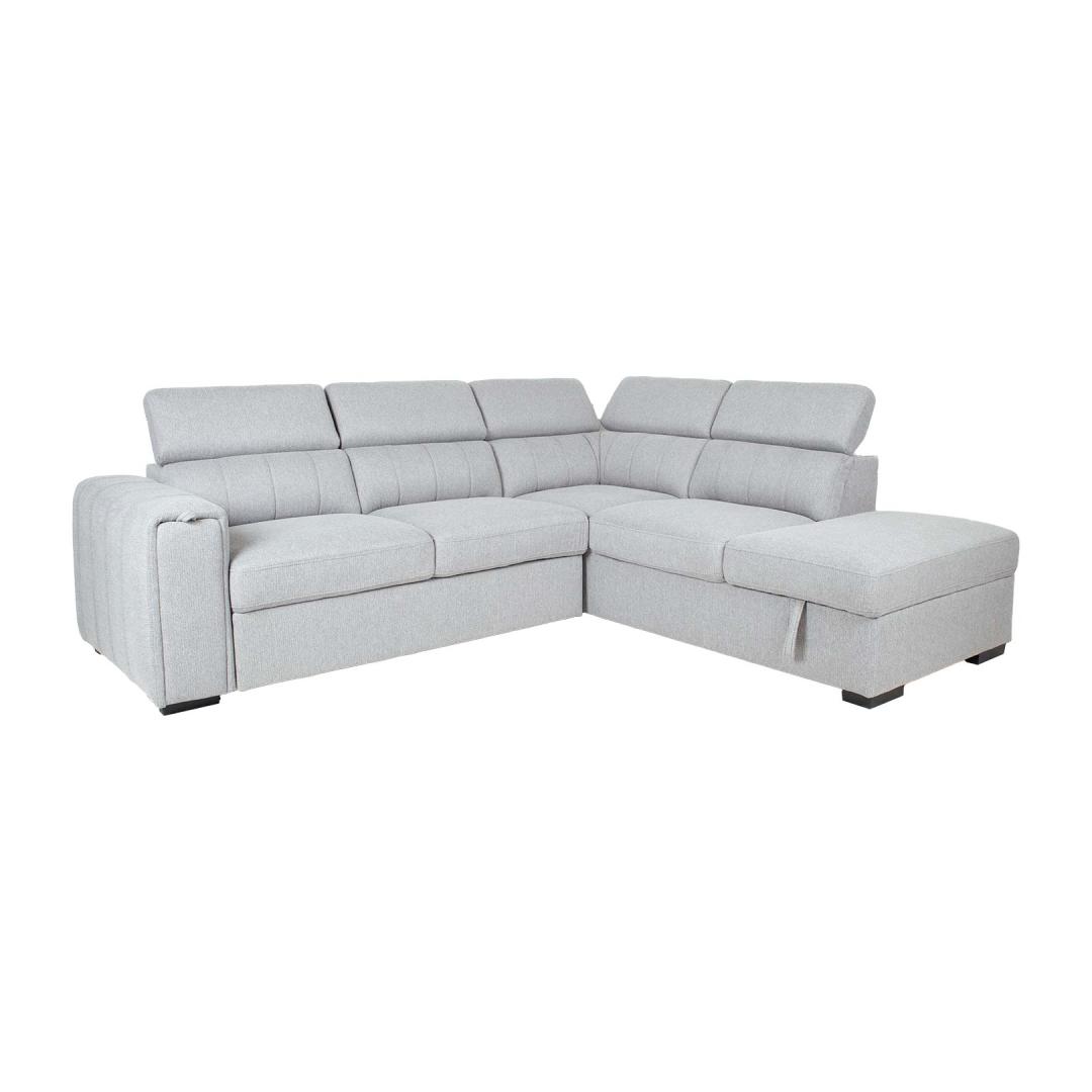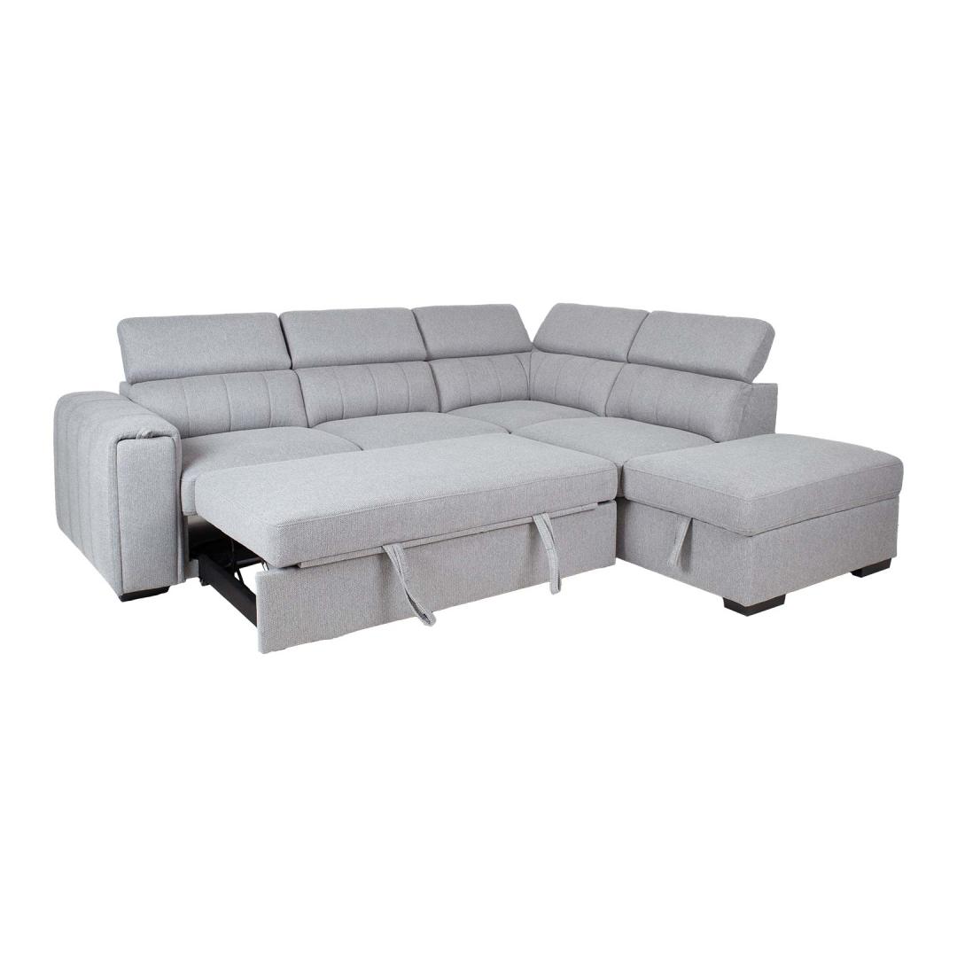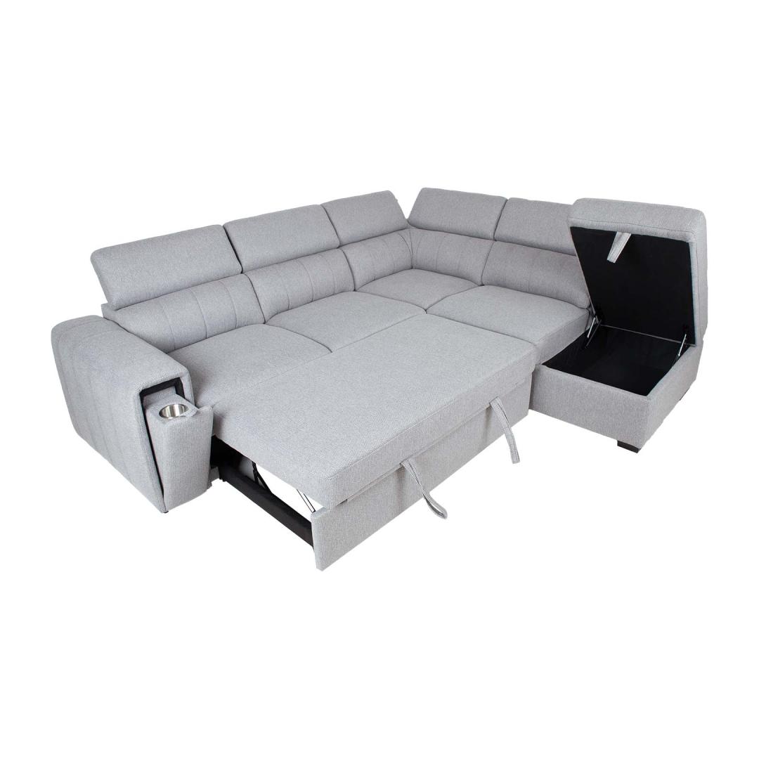 Magamisosa mõõdud avatuna 192x26cm. Nurgadiivanvoodi ODELIA-2 panipaigaga, parem nurk, hall.