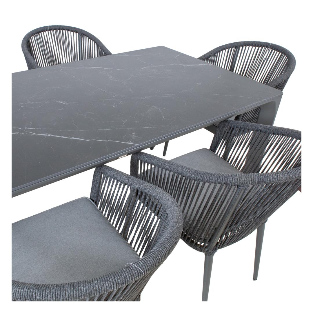 Aiamööblikomplekt CARVES laud ja 6 tooli. Laua mõõdud on 180x90xH75cm, lauaplaadi paksud 11mm. Jalad ja raam on valmistatud alumiiniumist (48x25x1,2mm) ja viimistletud halli pulbervärviga. Paagutatud kivist (sintered stone) lauaplaadi valmistamisel on kasutatud innovatiivset tehnoloogiat, mis jäljendab loodusliku kivi moodustumise protsessi sügaval maakoores. Kaoliini ehk portselansavi osakesed töödeldakse 1200 kraadises kuumuses, mille tulemusena moodustub materjal, mis oma omadustel ja välimuselt sarnaneb naturaalse kiviga. Lauaplaat on küll õhuke, kuid väga tugev (suhteline kõvadus Mohsi skaalal 7), kulumiskindel, talub hästi kõrget temperatuuri ja erinevaid ilmastikutingimusi, ei ima plekke ja seda on väga lihtne puhastada ja hooldada. Kuna keemilisi sideaineid ei ole kasutatud on materjal hügieeniline. TÄHELEPANU! Vältige lööke, põrutusi ja kukkumist. Tooli raam ja jalad on valmistatud alumiiniumist ja viimistletud halli pulbervärviga. Tooli selja- ja käetoed on kaetud nöörpunutisega. Istmepadi kuulub komplekti. Padjakate on valmistatud polüesterkangast. Padja mõõdud 45x42x5cm. Istmepõhi on toestatud alumiiniumliistudega. Tooli mõõdud on 57x65xH81cm, istmekõrgus 44cm. Kaalupiirang 100kg. Toolid on virnastatavad ning nende hoiustamine on lihtne ja ruumi säästev. HOIUSTAMINE: suvehooaja lõppedes soovitame aiamööblit hoiustada siseruumides. Puhastage ja kuivatage mööbel enne hoiule panekut. Kasutage hoiustamiseks jahedat, kuiva ning hea ventilatsiooniga. Aiamööblikomplekt CARVES laud ja 6 tooli. Laua mõõdud on 180x90xH75cm, lauaplaadi paksud 11mm. Jalad ja raam on valmistatud alumiiniumist (48x25x1,2mm) ja viimistletud halli pulbervärviga. Paagutatud kivist (sintered stone) lauaplaadi valmistamisel on kasutatud innovatiivset tehnoloogiat, mis jäljendab loodusliku kivi moodustumise protsessi sügaval maakoores. Kaoliini ehk portselansavi osakesed töödeldakse 1200 kraadises kuumuses, mille tulemusena moodustub materjal, mis oma omadustel ja välimuselt sarnaneb naturaalse kiviga. Lauaplaat on küll õhuke, kuid väga tugev (suhteline kõvadus Mohsi skaalal 7), kulumiskindel, talub hästi kõrget temperatuuri ja erinevaid ilmastikutingimusi, ei ima plekke ja seda on väga lihtne puhastada ja hooldada. Kuna keemilisi sideaineid ei ole kasutatud on materjal hügieeniline. TÄHELEPANU! Vältige lööke, põrutusi ja kukkumist. Tooli raam ja jalad on valmistatud alumiiniumist ja viimistletud halli pulbervärviga. Tooli selja- ja käetoed on kaetud nöörpunutisega. Istmepadi kuulub komplekti. Padjakate on valmistatud polüesterkangast. Padja mõõdud 45x42x5cm. Istmepõhi on toestatud alumiiniumliistudega. Tooli mõõdud on 57x65xH81cm, istmekõrgus 44cm. Kaalupiirang 100kg. Toolid on virnastatavad ning nende hoiustamine on lihtne ja ruumi säästev. HOIUSTAMINE: suvehooaja lõppedes soovitame aiamööblit hoiustada siseruumides. Puhastage ja kuivatage mööbel enne hoiule panekut. Kasutage hoiustamiseks jahedat, kuiva ning hea ventilatsiooniga.