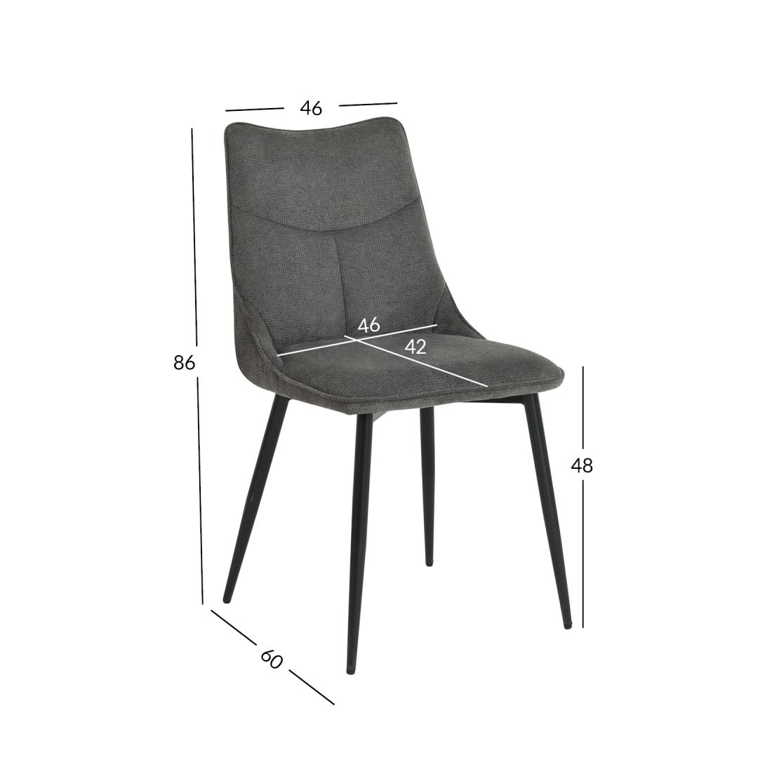 Стул MAIA 46x59x48/86см, серый. Сиденье стула имеет мягкую подкладку и покрыто полиэстеровой тканью. Ножки стула изготовлены из металла и покрыты черной порошковой краской. Ограничение по весу 120 кг.