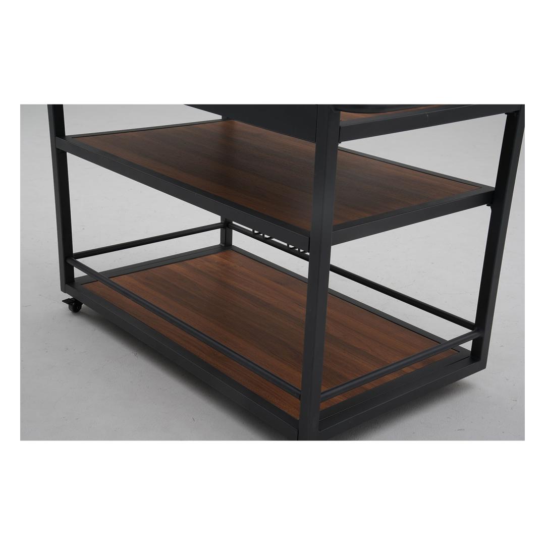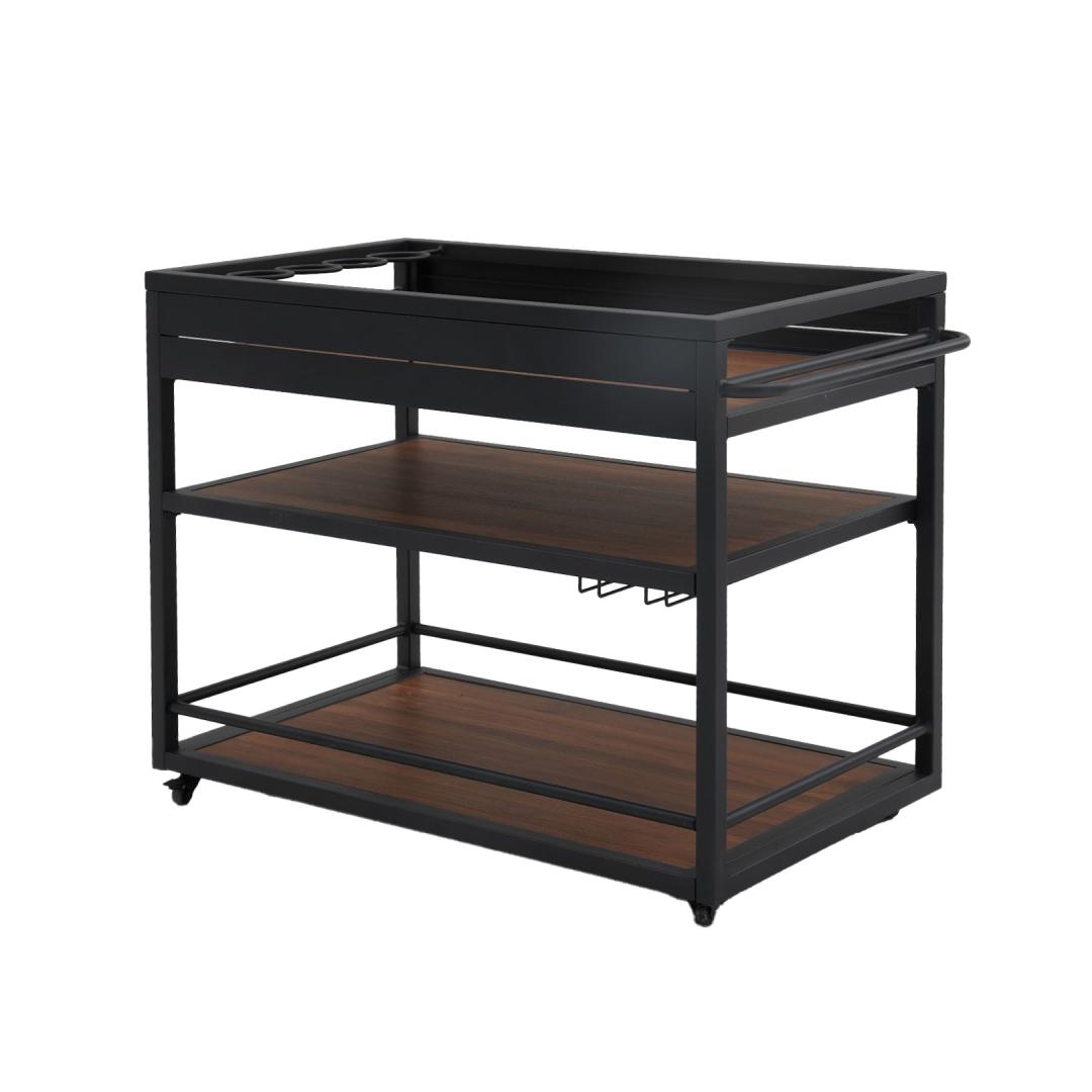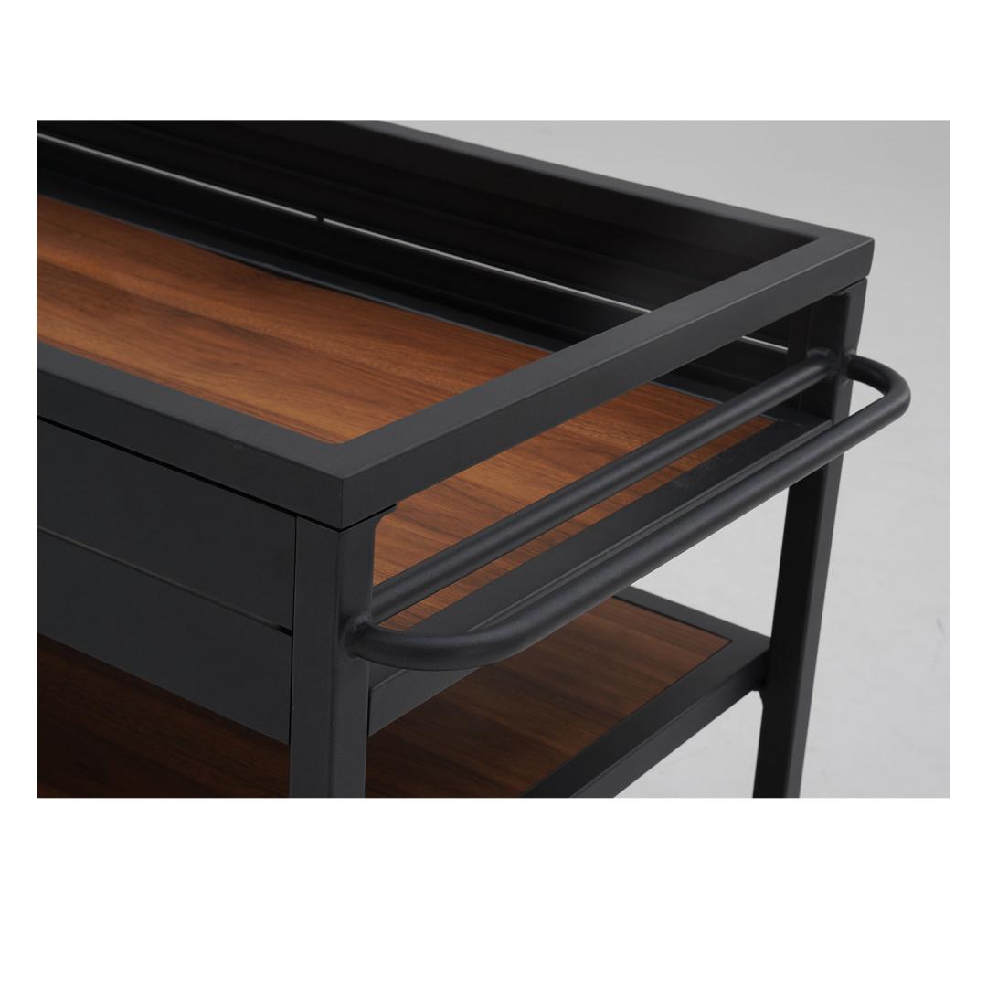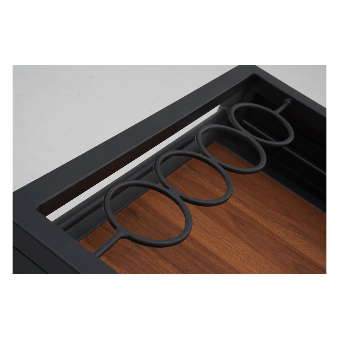 Köögimooduli raam ja riiulid on valmistatud alumiiniumist. Raam on viimistletud tumehalli pulbervärviga. Riiulid on värvitud puidutekstuuri jäljendava pruuni värviga.