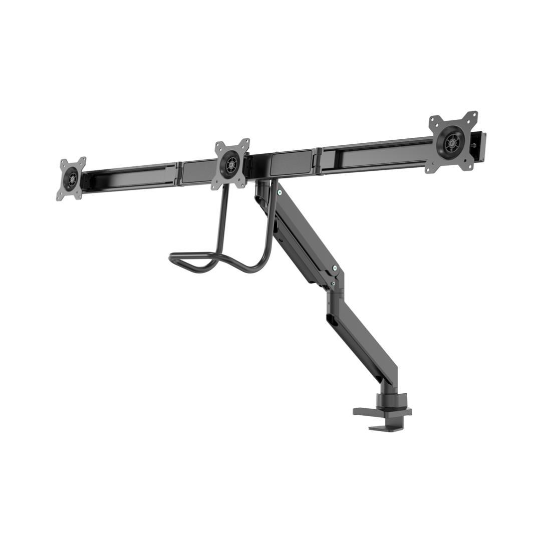 The Neomounts Select NM-D775DX3BLACK is a tilt-, swivel and rotatable desk mount with crossbar and handle for three flat screens up to 24". This mount is a great choice for space saving placement on desks using a desk clamp or grommet mount. Neomounts Selects unique tilt (20°), rotate (360°) and swivel (180°) technology allows the mount to change to any viewing angle to fully benefit from the capabilities of the flat screen. The mount is easily individually height adjustable to 60 centimetres using a gas spring. Depth adjustable from 0 to 63 centimetres. A unique cable management conceals and routes cables from mount to flat screen. Hide your cables to keep the workplace nice and tidy. The mount is equipped with a 180° stop mechanism. Neomounts Select NM-D775DX3BLACK with handle has three pivot points and is suitable for most screens up to 24" (61 cm). The weight capacity of this product is 2 to 18 kg (max. 6 kg each screen). The desk mount is suitable for screens that meet VESA hole pattern 75x75 or 100x100mm. Different hole patterns can be covered using Neomounts Select VESA adapter plates. By using an ergonomic mount neck- and back complaints can be avoided. Ideal for use in offices and on counters or in a reception area. All installation material is included with the product.