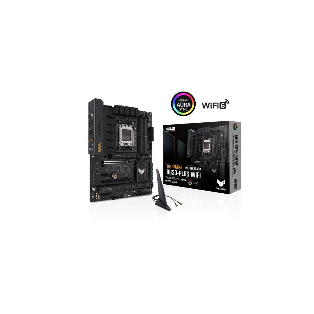 ASUS TUF GAMING B650-PLUS WIFI takes all the essential elements of the latest AMD Ryzen 7000-series processors and combines them with game-ready features and proven durability. Engineered with military-grade components, an upgraded power solution and a comprehensive cooling system, this motherboard goes beyond expectations with rock-solid and stable performance for marathon gaming. TUF GAMING motherboards also undergo rigorous endurance testing to ensure that they can handle conditions where others may fail. Aesthetically, this model incorporates rugged off-black and geometric design elements to reflect the dependability and stability that defines the TUF GAMING series.