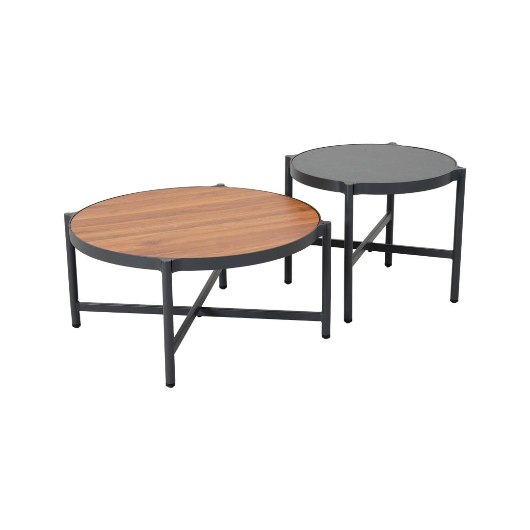 Laudade mõõdud on D77xH36cm, lauaplaat: 5mm kunstpuit, D58xH44cm, lauaplaat: 5mm hall klaas.