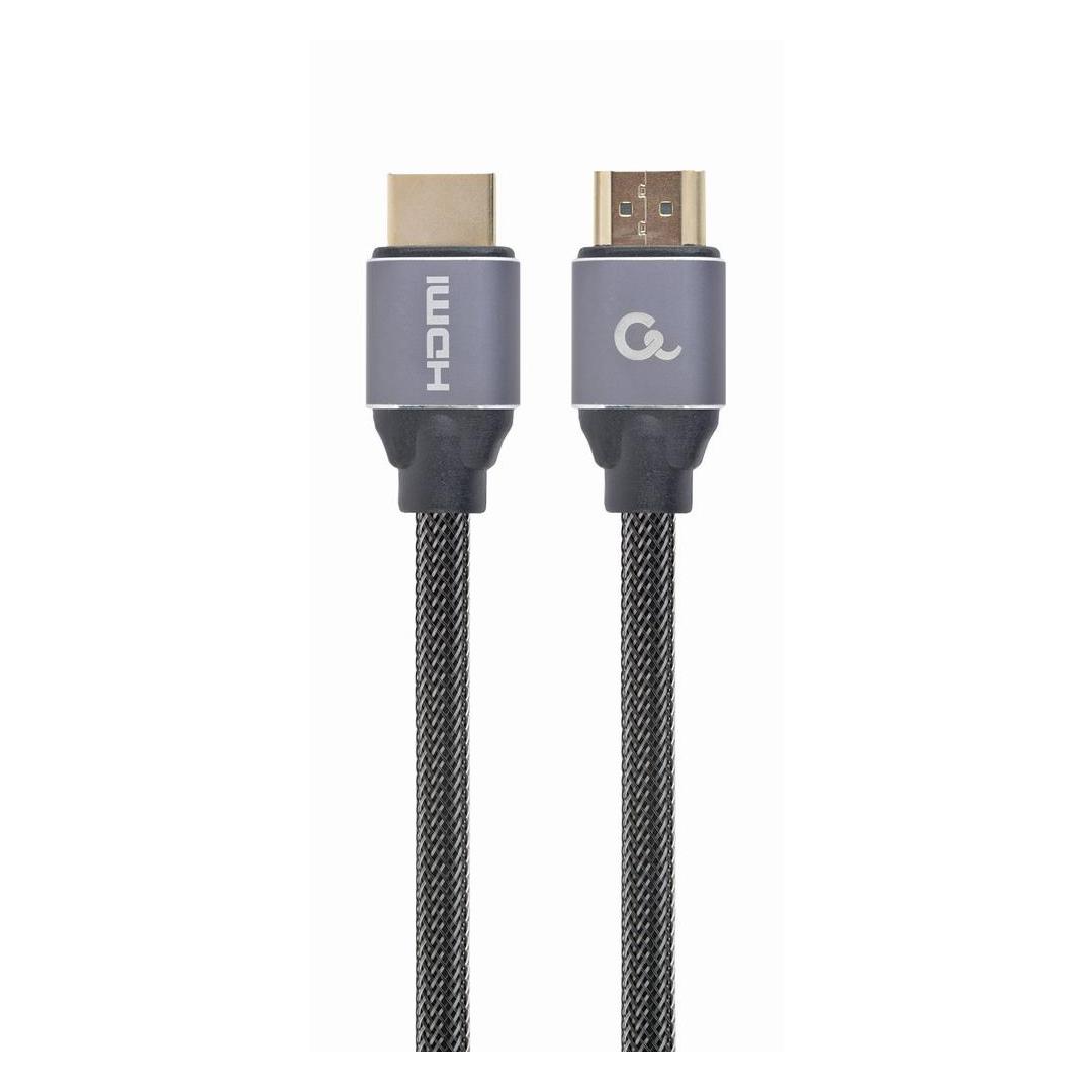 Gembird CCBP-HDMI-5M. Cable length: 5 m, Connector 1: HDMI Type A (Standard), Connector 1 gender: Male, Connector 2: HDMI Type A (Standard), Connector 2 gender: Male, Connector contacts plating: Gold, HDMI version: 2.0, Product colour: Grey