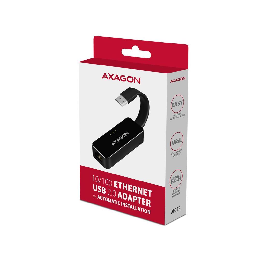 USB 2.0 Ethernet 10/100 adapter with automatic installation.