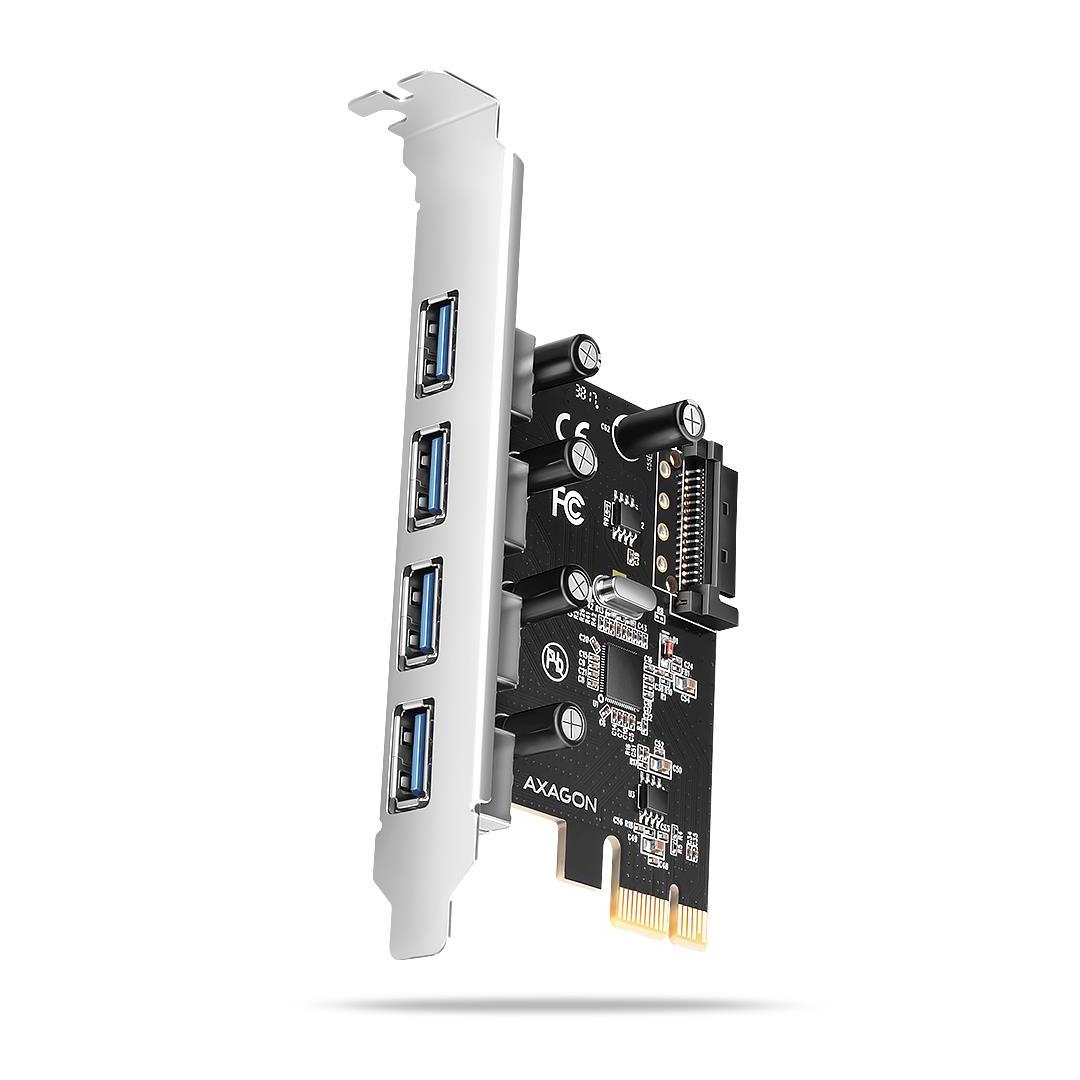 The AXAGON PCEU-430RS PCI-Express card adds four external USB-A 5Gbps ports to your desktop computer. The card is designed for fast data transfers at speeds up to 5 Gb/s.